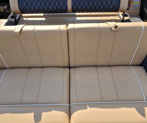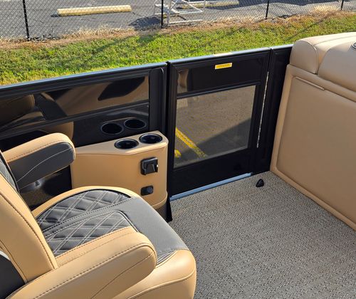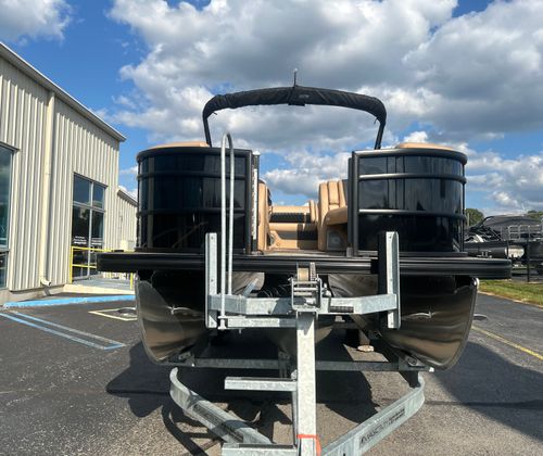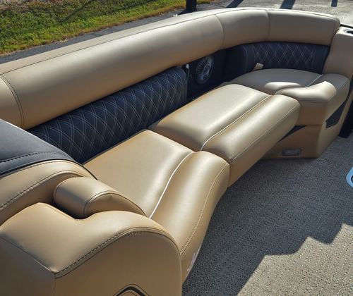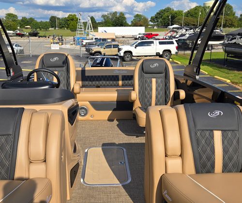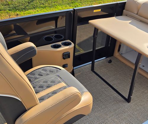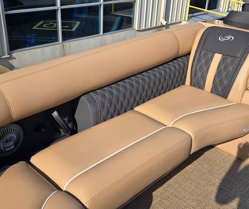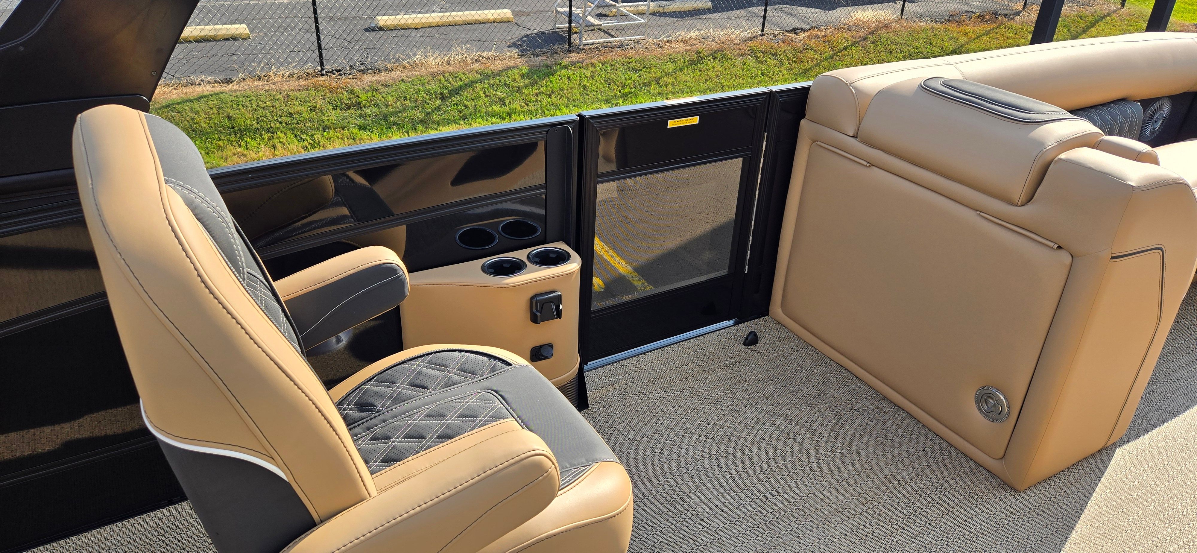 The 2026 Barletta Lusso L25UC is a showcase of premium features and sophisticated design. The exterior boasts a striking Black Diamond sweep color and accent color, complemented by the Blackout Package Lusso railskin, giving this pontoon a bold, modern look that turns heads at every marina. Step aboard and you’ll be greeted by Carmella Tan with Onyx furniture, offering plush comfort and a refined aesthetic. The Amore Tan flooring adds a touch of warmth and elegance, making every moment on deck feel like a luxury retreat.For those who love to entertain or relax in style, the Sport Bimini (installed in place of the standard bimini) provides ample shade and protection from the sun, allowing you to enjoy long days on the water in comfort. The white underdeck and underwater exterior lighting create a captivating ambiance for evening cruises, making every sunset and starlit night even more magical.