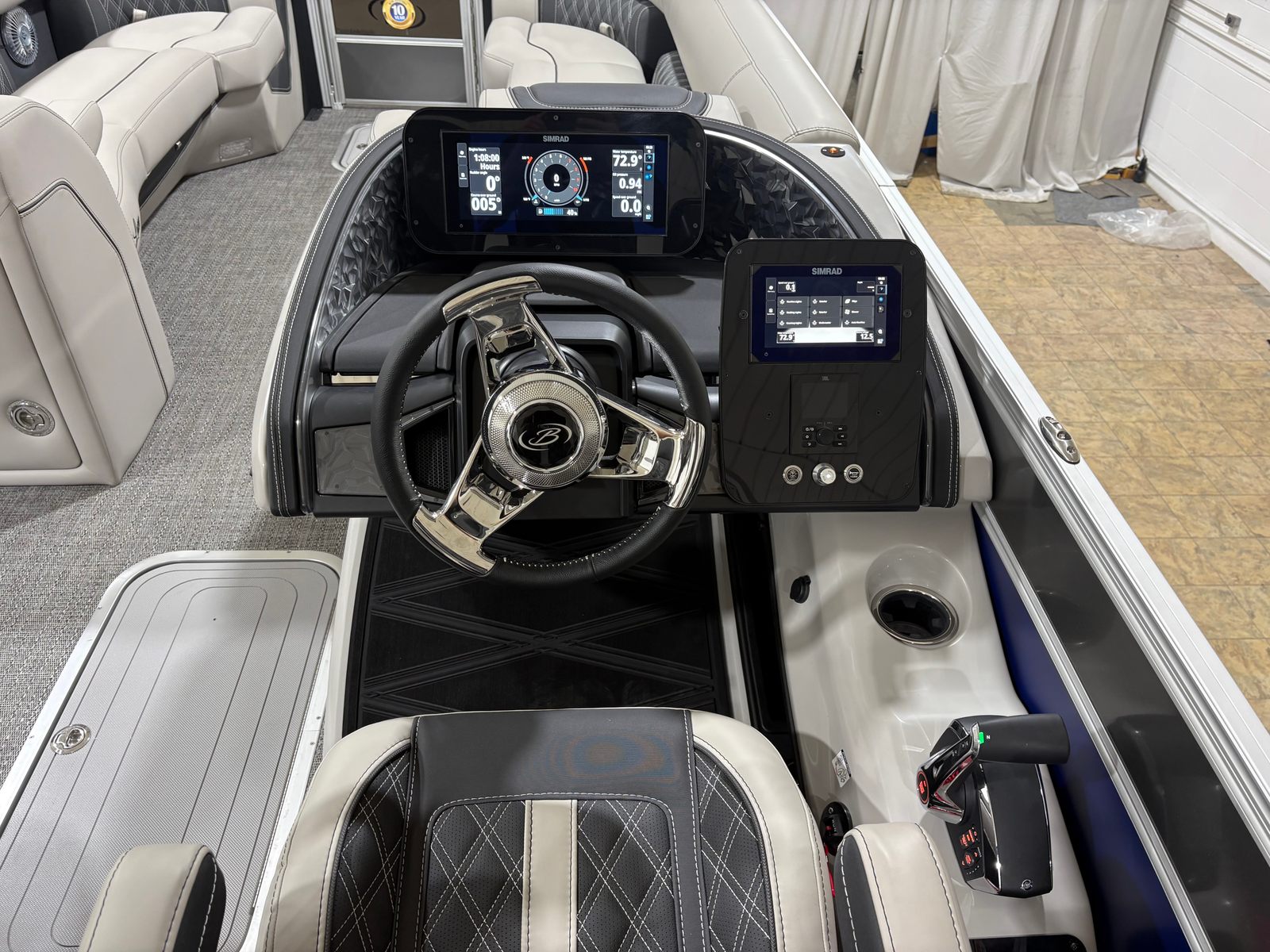 At the heart of the Barletta Lusso L25UC is a powerful Mercury 300L Verado V8 engine, delivering an exhilarating 300 horsepower. This advanced outboard engine is renowned for its smooth, quiet operation and robust performance, making it ideal for both leisurely cruises and high-speed adventures. The Mercury Digital DTS Pre-Rig for VERADO engines with Vessel Link ensures seamless integration and precise control, while the hydraulic and power assist steering provides effortless handling. Whether you are navigating calm lakes or exploring open waters, this pontoon boat offers a responsive and enjoyable ride every time.
