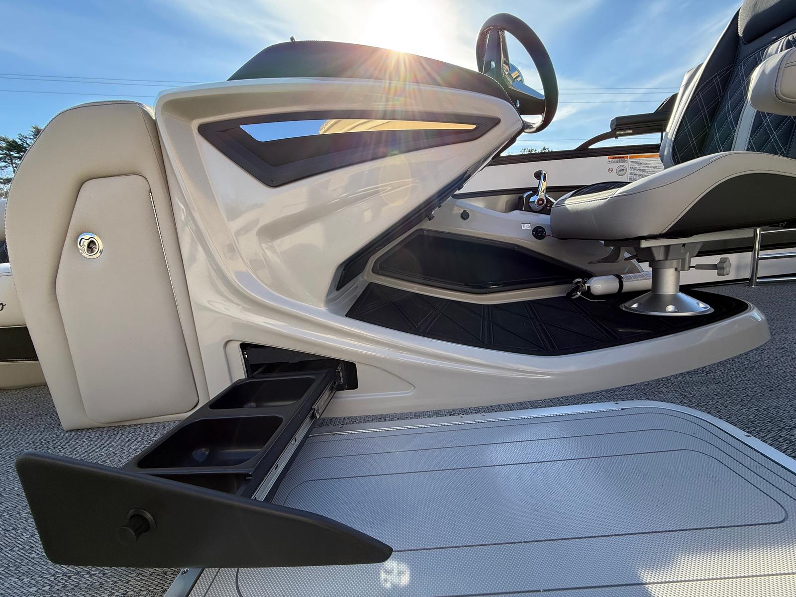 The Barletta Lusso L25UC is designed with practicality in mind, making ownership easy and rewarding. The onboard battery charger and dual batteries provide reliable power for all your electronics and accessories, so you can stay out longer without worry. Exterior lighting enhances visibility and safety, making docking and nighttime navigation straightforward. The durable flooring and high-quality furniture are easy to clean and maintain, ensuring your pontoon boat stays looking great season after season. Hydraulic and power assist steering simplify docking and maneuvering, even in crowded marinas. The efficient Mercury 300L Verado V8 engine offers excellent fuel economy for its class, allowing you to enjoy more time on the water with fewer stops at the pump.