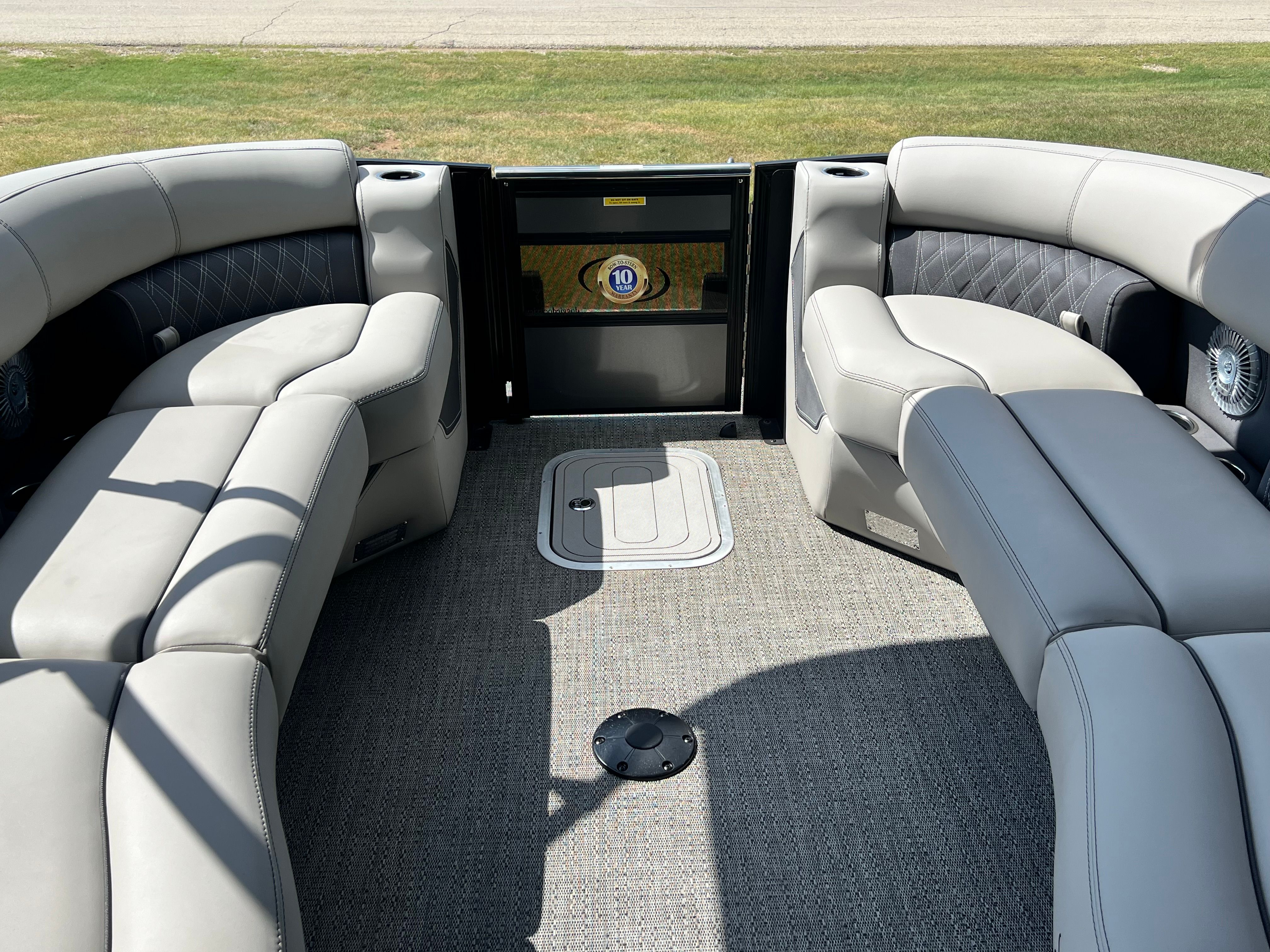 At the heart of the Barletta Lusso L25UC is a powerful Mercury (D) 400L V10 Verado engine, delivering an exhilarating 400 horsepower. This state-of-the-art engine is expertly rigged with a V10 prop, ensuring smooth acceleration, responsive handling, and impressive top speeds. Whether you are cruising across the lake or towing water toys, the Lusso L25UC offers a thrilling ride that will satisfy even the most demanding boating enthusiasts. The Mercury Digital Pre-Rig for V10 ensures seamless integration and optimal performance, making every outing effortless and enjoyable.