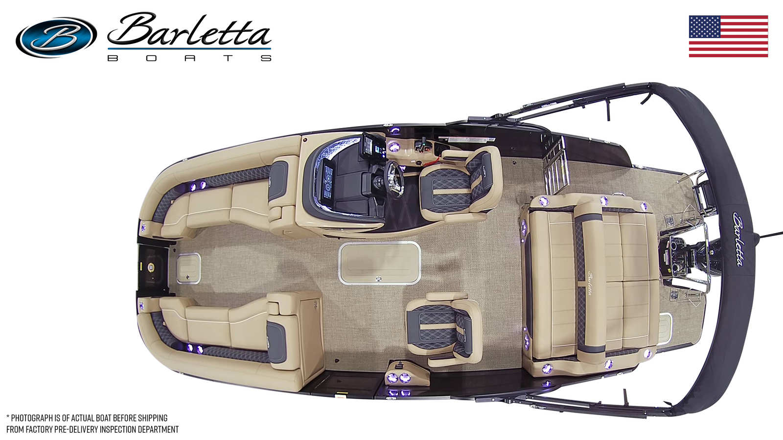 The 2026 Barletta Lusso L25UC stands out as a premier pontoon boat, measuring an impressive 27.5 feet in length. This brand-new vessel is meticulously crafted to deliver a superior on-water experience, whether you are cruising along the shoreline, anchoring at your favorite cove, or entertaining guests under the open sky. Its sleek profile, highlighted by the Black Diamond sweep and accent colors, ensures you will turn heads wherever you go. The Blackout Package Lusso adds a touch of modern elegance, while the Carmella Tan with Onyx furniture and Amore Tan flooring create a warm, inviting atmosphere for all aboard.