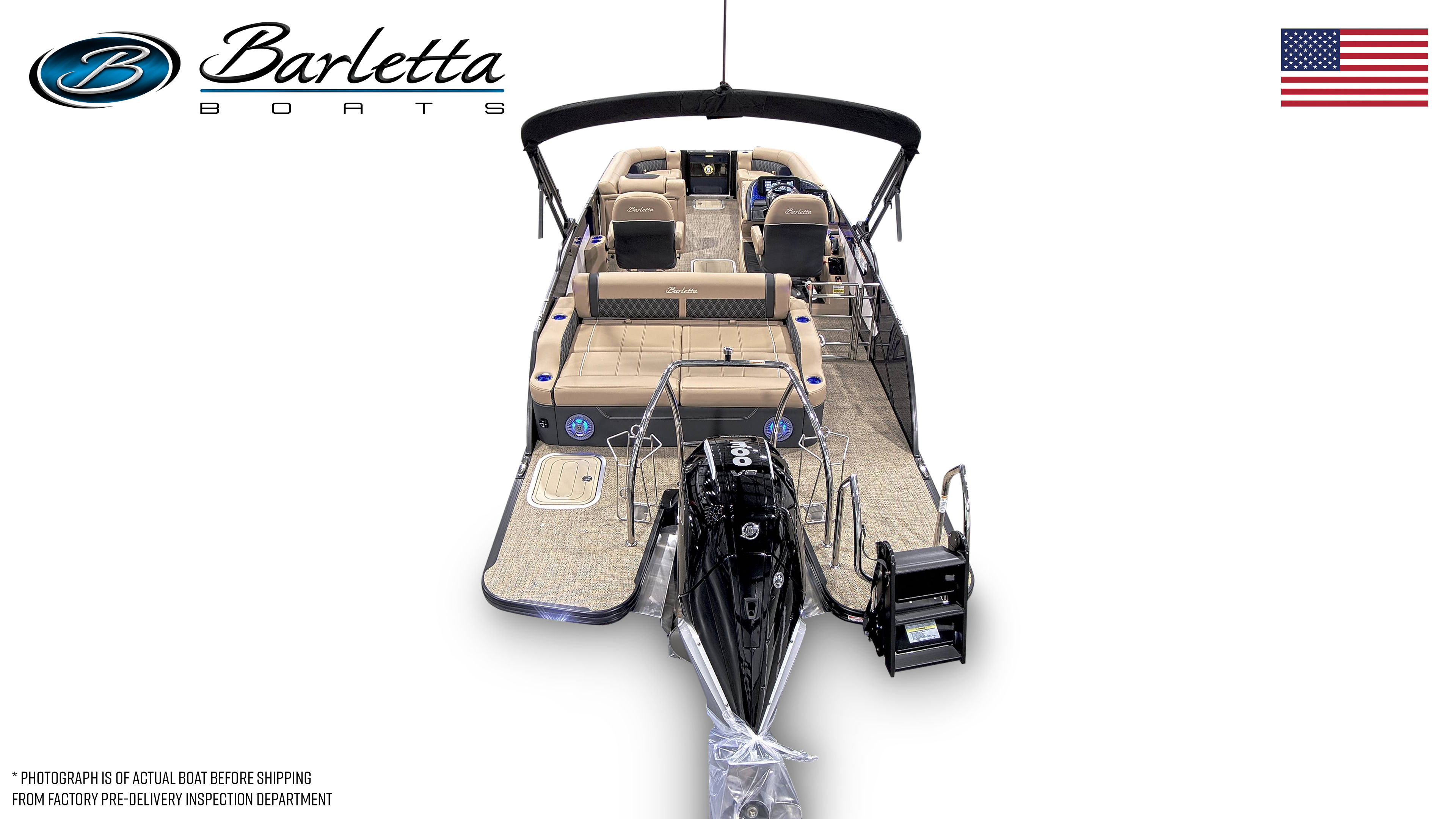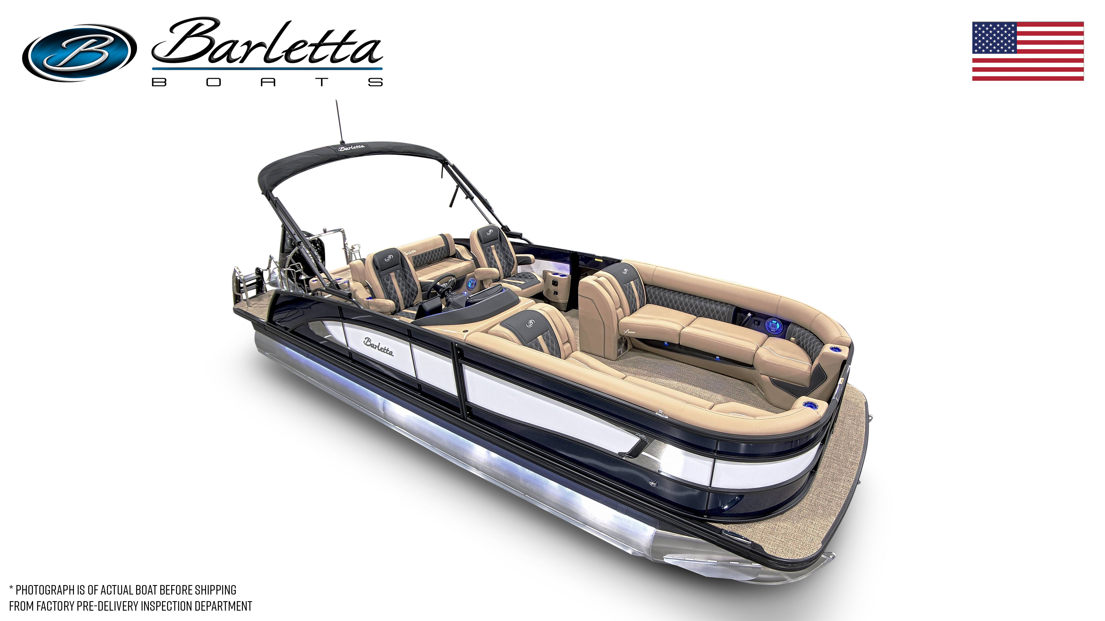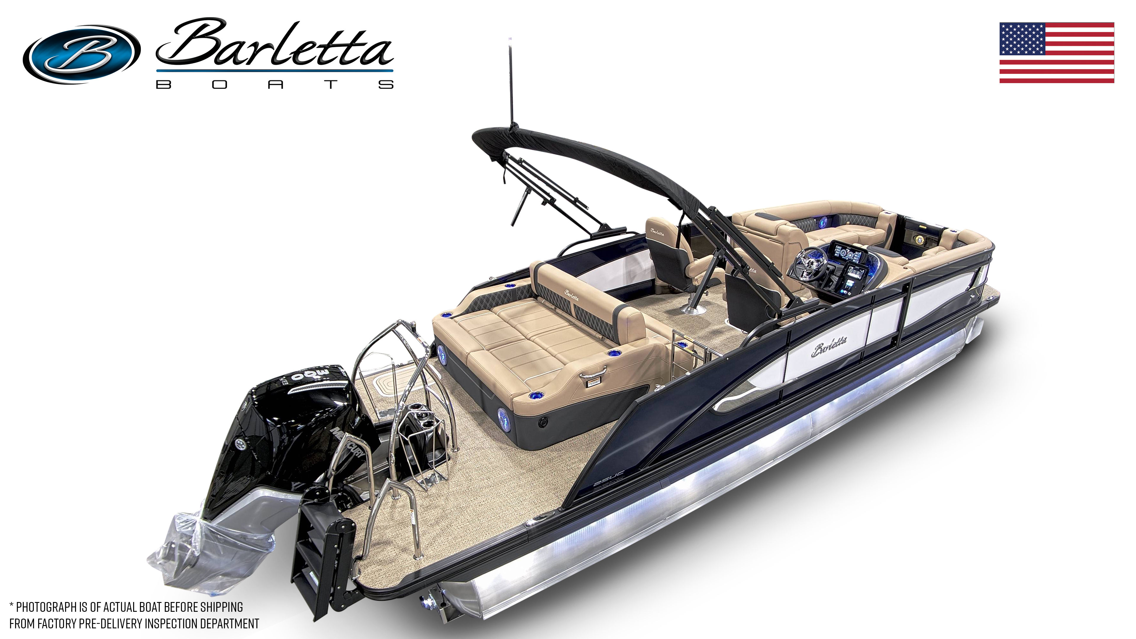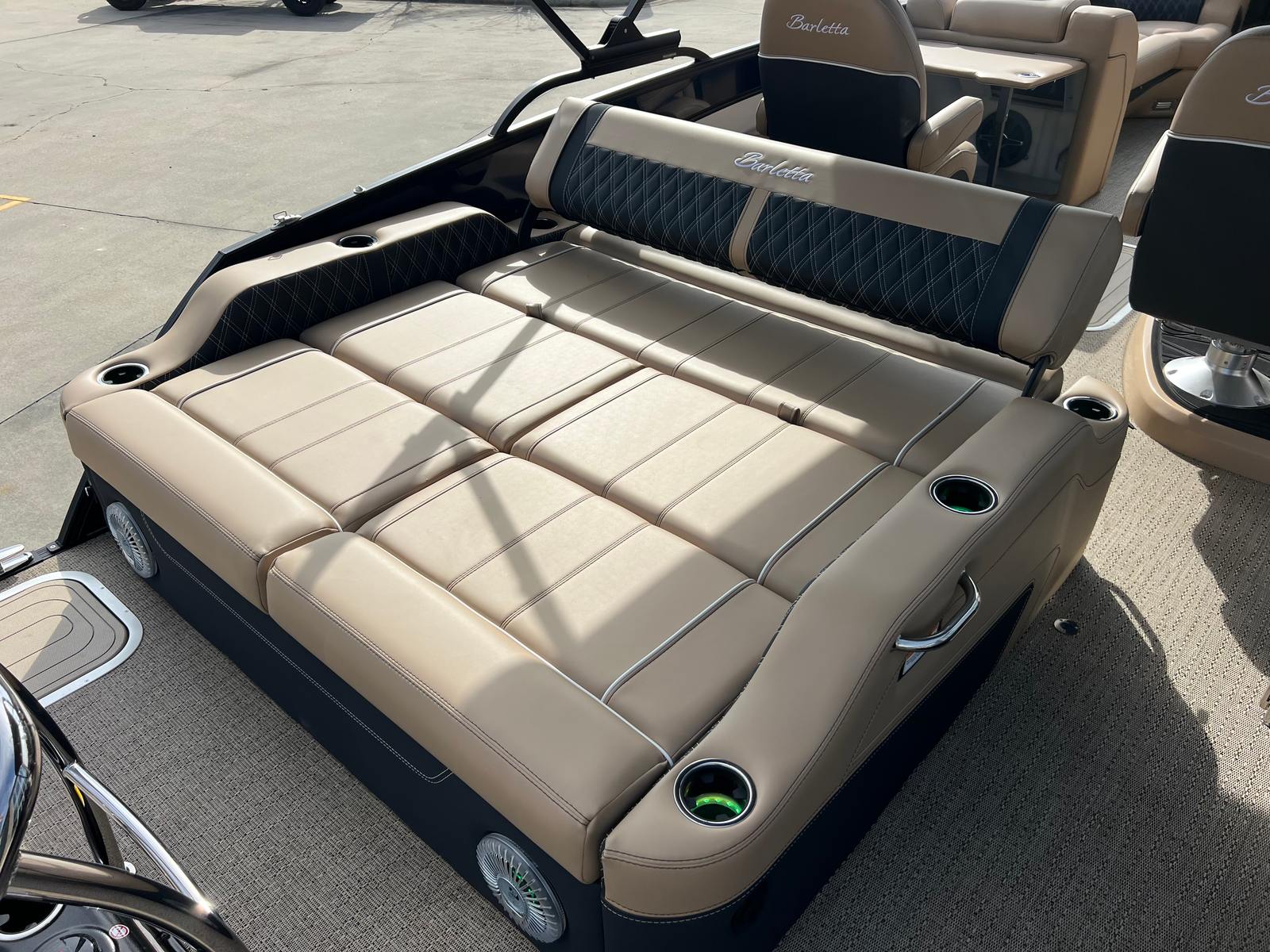 In summary, the 2026 Barletta Lusso L25UC is a standout pontoon boat for sale that offers unmatched luxury, performance, and versatility. With its striking Blue Sapphire and Winter White color scheme, Blackout Package Lusso railskin, Carmella Tan with Onyx furniture, and Amore Tan flooring, this boat is as beautiful as it is functional. The powerful Mercury 300L Verado V8 engine, advanced digital controls, and thoughtful features like pre-wiring for an additional bimini and an onboard battery charger with two batteries make this pontoon a joy to own and operate.Whether you are seeking adventure, relaxation, or the perfect setting for social gatherings, the Barletta Lusso L25UC delivers on every front. Do not miss your chance to experience the ultimate in pontoon boating—contact your local dealer today to learn more about this exceptional Barletta boat for sale and make your dream of luxury on the water a reality.
