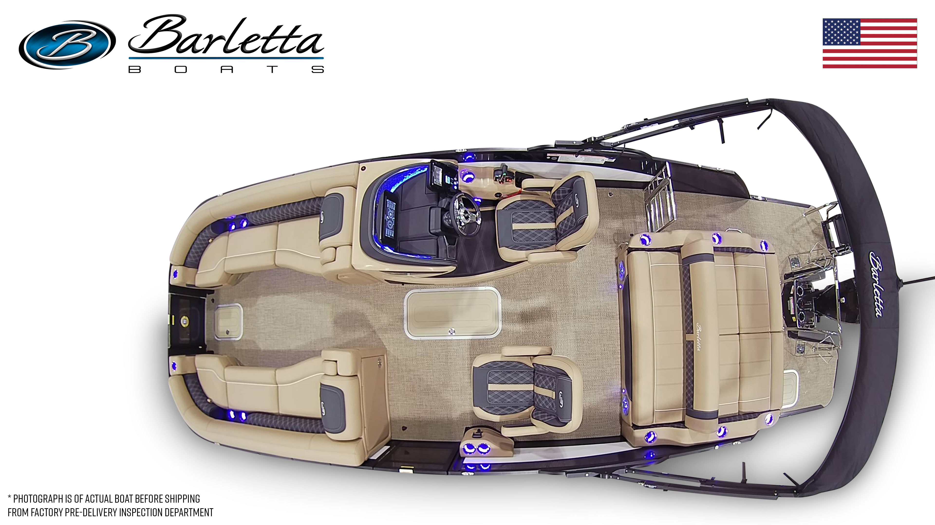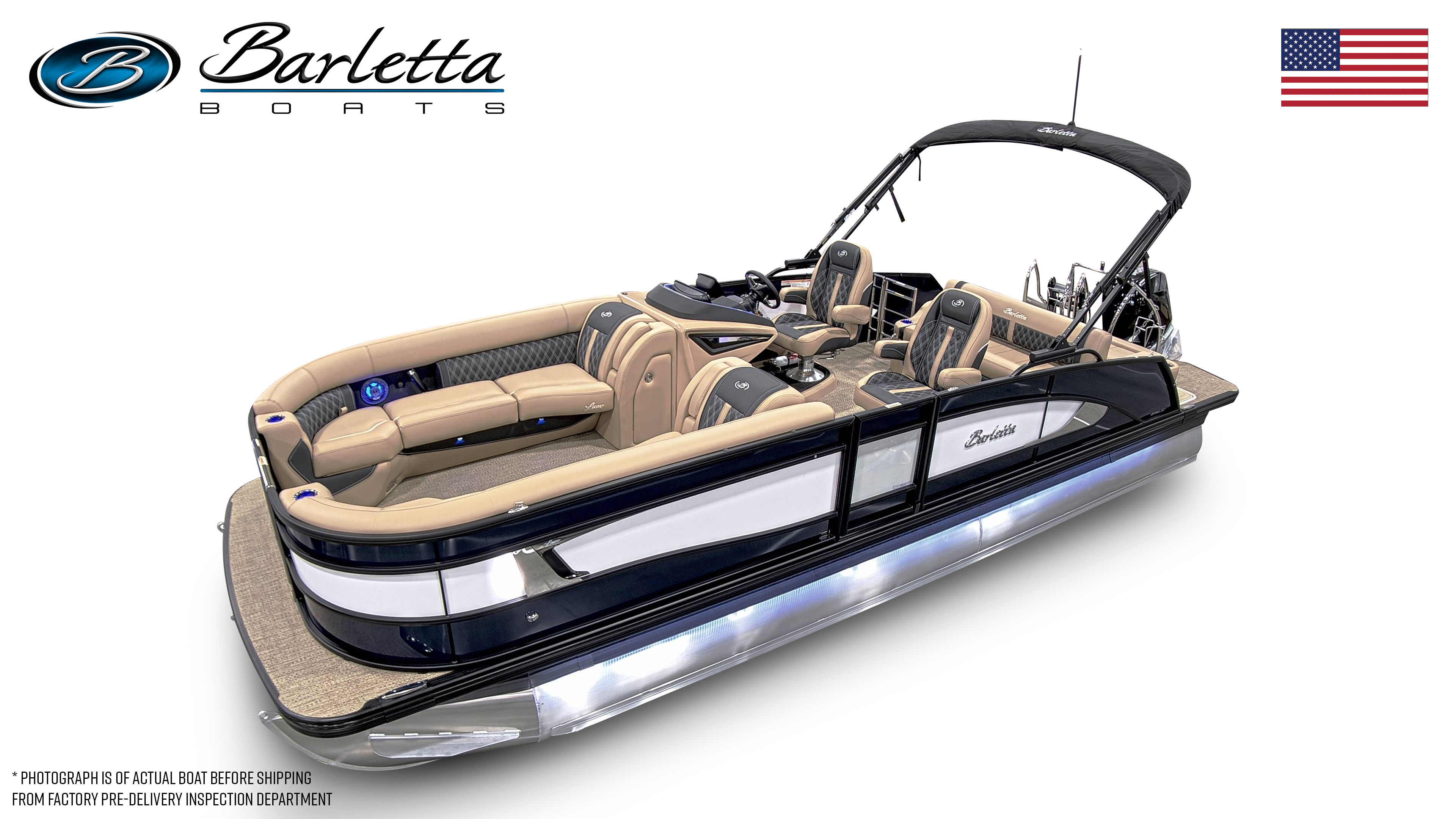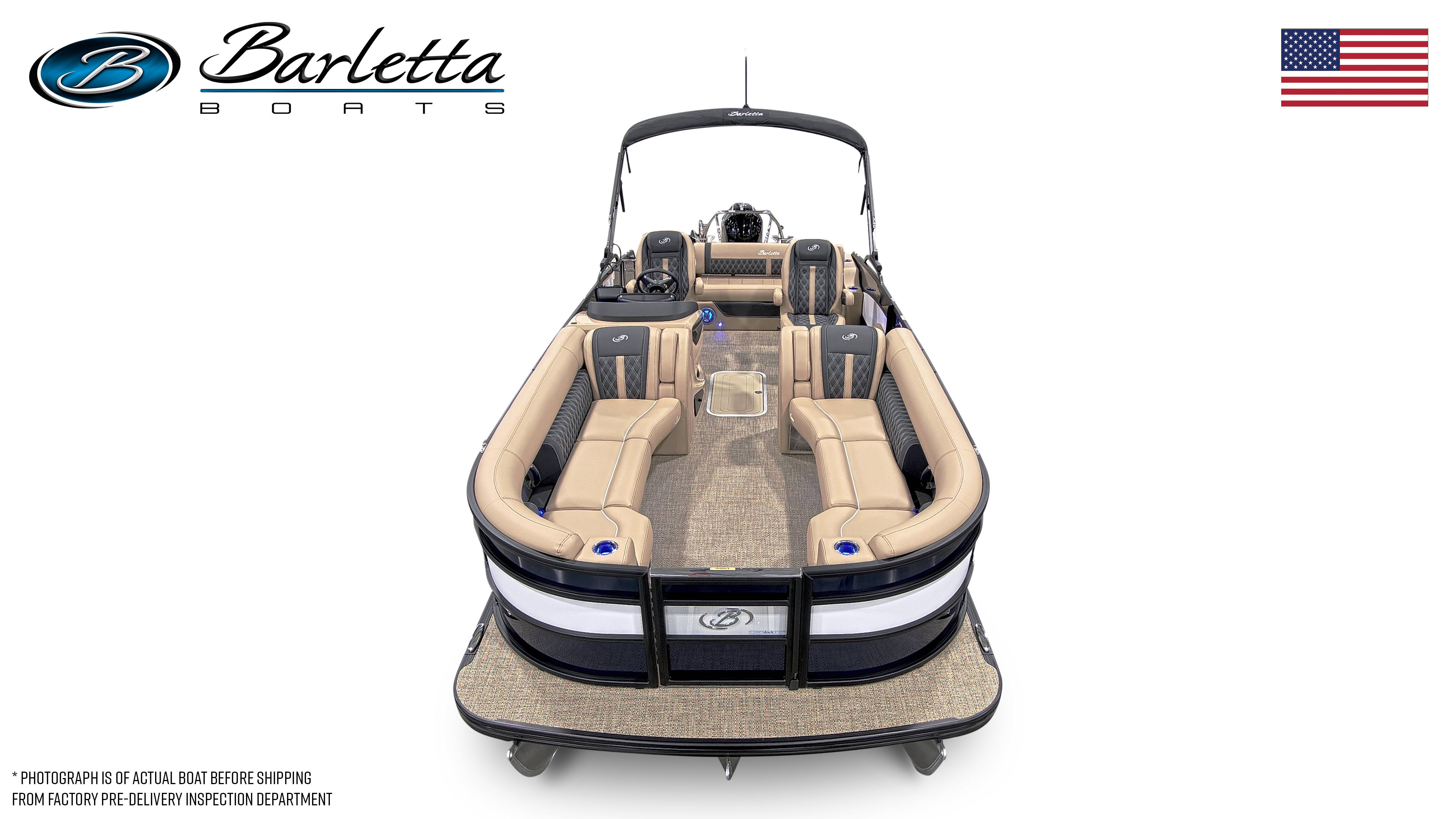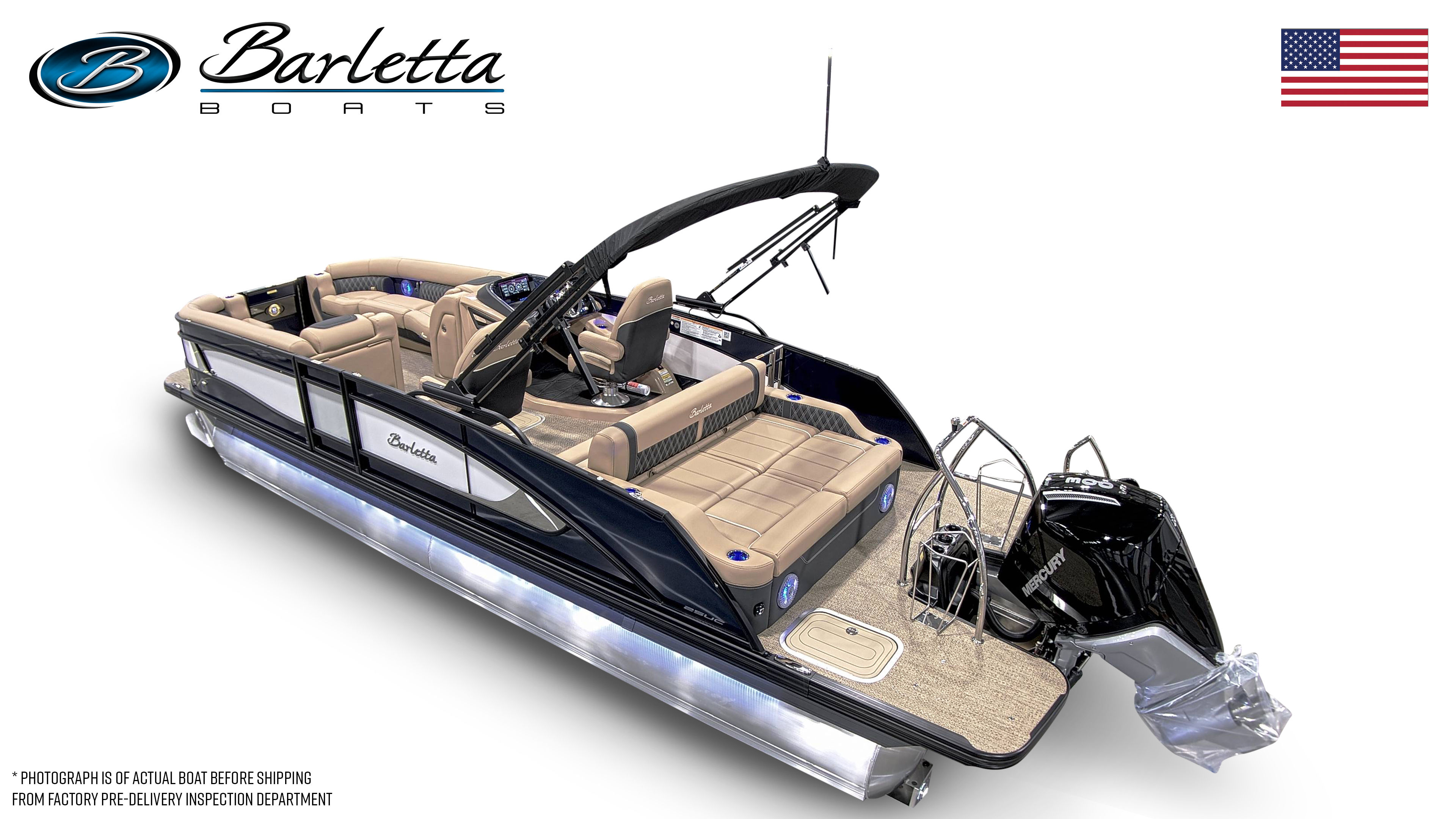 In summary, the 2026 Barletta Lusso L25UC is a standout pontoon boat for sale that offers unmatched luxury, performance, and versatility. With its striking Blue Sapphire and Winter White color scheme, Blackout Package Lusso railskin, Carmella Tan with Onyx furniture, and Amore Tan flooring, this boat is as beautiful as it is functional. The powerful Mercury 300L Verado V8 engine, advanced digital controls, and thoughtful features like pre-wiring for an additional bimini and an onboard battery charger with two batteries make this pontoon a joy to own and operate.Whether you are seeking adventure, relaxation, or the perfect setting for social gatherings, the Barletta Lusso L25UC delivers on every front. Do not miss your chance to experience the ultimate in pontoon boating—contact your local dealer today to learn more about this exceptional Barletta boat for sale and make your dream of luxury on the water a reality.
