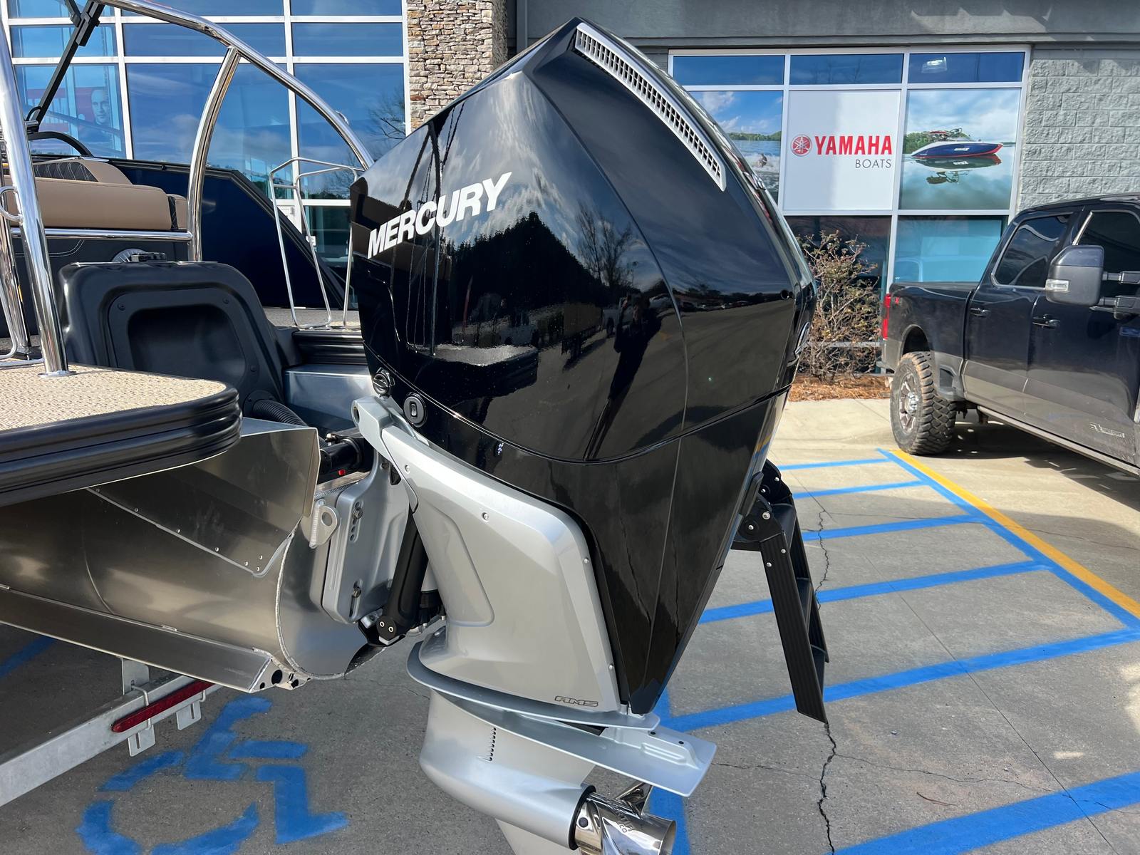 Under the hood, the Barletta Lusso L25UC is powered by a robust Mercury (D) 300L Verado V8 engine, delivering an impressive 300 horsepower. This single-engine setup ensures smooth acceleration, responsive handling, and reliable performance, whether you are cruising across the lake or towing water toys for added excitement. The Mercury Digital DTS Pre-Rig for VERADO engines with Vessel Link provides advanced digital throttle and shift controls, offering precise maneuverability and effortless operation. Hydraulic and power assist steering further enhance the driving experience, making docking and navigating tight spaces a breeze. With a stainless steel prop and digital gauges, you can trust that every journey will be both powerful and efficient.