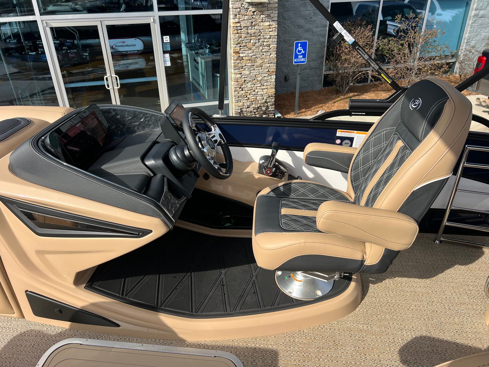 The 2026 Barletta Lusso L25UC is loaded with premium features designed to elevate your time on the water. The Blackout Package Lusso railskin adds a touch of modern sophistication, while the Blue Sapphire and Winter White color scheme ensures you stand out from the crowd. The Carmella Tan with Onyx furniture offers plush seating and ergonomic support, perfect for long days of relaxation or lively gatherings. Amore Tan flooring provides a soft, slip-resistant surface that is both stylish and practical.This pontoon boat is equipped with Mercury Digital DTS Pre-Rig for VERADO engines with Vessel Link, ensuring seamless integration and control of your engine systems. Hydraulic and power assist steering make handling effortless, while digital gauges provide real-time information at a glance. The rigged engine with a stainless steel prop ensures optimal performance and durability. For added convenience, the boat is pre-wired for an additional bimini, allowing you to customize your shade and comfort options. The onboard battery charger with two batteries ensures you have reliable power for all your electronic needs throughout the day.