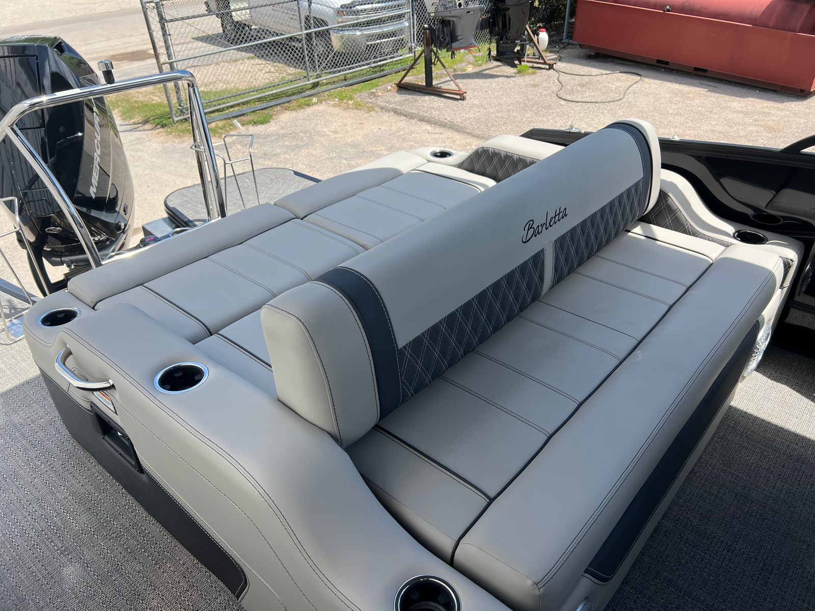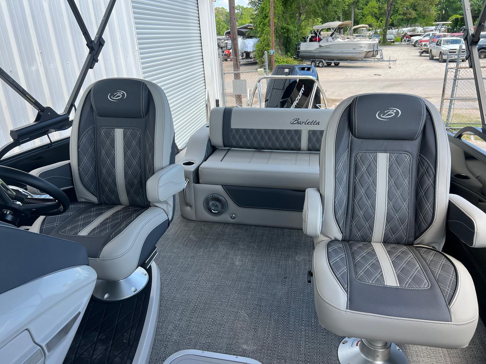 The 2025 Barletta Lusso L25UC is more than just a pontoon boat for sale – it is an invitation to experience the best that boating has to offer. With its powerful Mercury V10 Verado engine, luxurious Marquesan Gray furniture with Charcoal Accent, Amore Gray flooring, Black Diamond exterior, adjustable captain’s chair, helm windshield, double bimini system, Metal Jacket Protectant, and Yeti-ready cupholders, this Barletta boat for sale is designed to impress at every turn.If you are ready to elevate your time on the water and create lasting memories with family and friends, the Barletta Lusso L25UC is the perfect choice. Discover the ultimate in comfort, performance, and style – contact your local dealer today to learn more about this exceptional pontoon and make it yours.