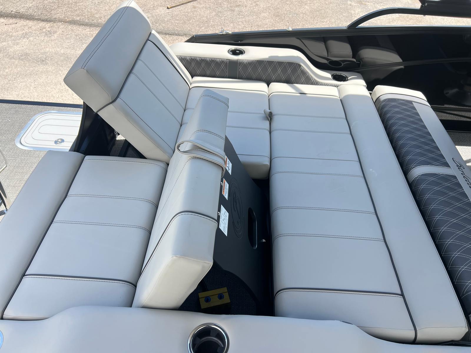 Owning the Barletta Lusso L25UC means embracing a lifestyle of fun, relaxation, and connection. The spacious layout provides plenty of room for family and friends to stretch out, socialize, and enjoy the water together. The plush seating and thoughtful design elements create an inviting space for lounging, dining, or celebrating special occasions. The double bimini system ensures that everyone can find a comfortable spot in the shade, while the ample deck space makes it easy to move around and enjoy the view.The Lusso L25UC is perfect for hosting gatherings, whether you are planning a sunset cruise, a weekend picnic on the water, or a lively party with friends. The table and Yeti-ready cupholders make it easy to serve refreshments, while the stylish interior and exterior finishes create an atmosphere of luxury and sophistication. With its powerful engine and smooth ride, you can explore new destinations, try out water sports, or simply relax and soak up the sun.
