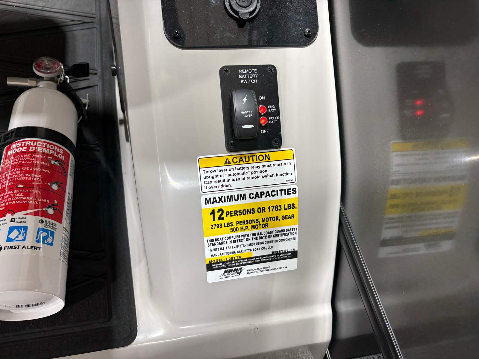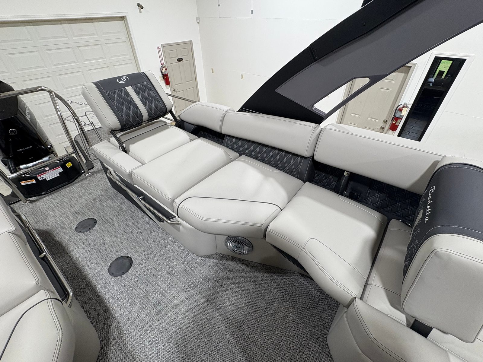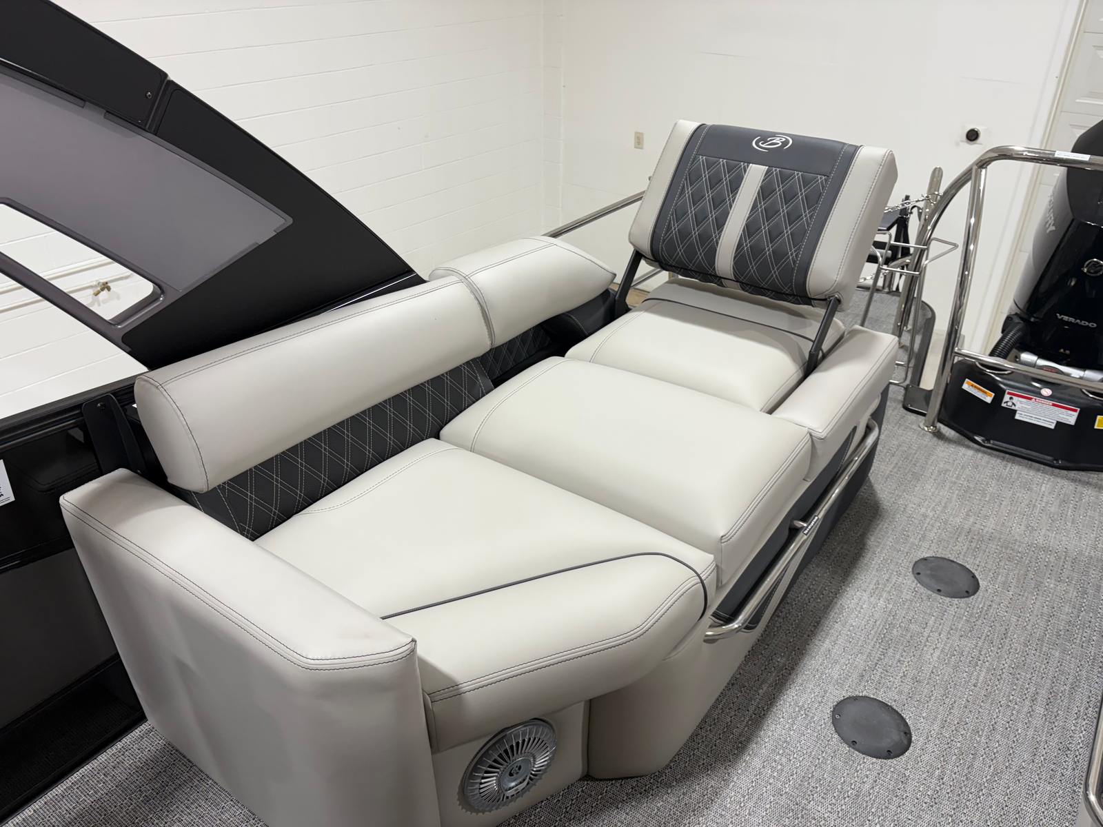 At the heart of the Barletta Lusso L25UC is a powerful Mercury 300L Verado V8 engine, delivering an impressive 300 horsepower. This single-engine setup ensures smooth acceleration, responsive handling, and the ability to reach exhilarating speeds, all while maintaining the quiet, refined ride that Barletta is known for. The Mercury Digital DTS Pre-Rig for VERADO engines with Vessel Link provides seamless digital throttle and shift control, enhancing both safety and convenience. Hydraulic and power assist steering make maneuvering effortless, whether you are cruising open waters or docking at your favorite marina. With a stainless steel prop and precision rigging, this pontoon boat is engineered for reliability and peak performance every time you hit the water.