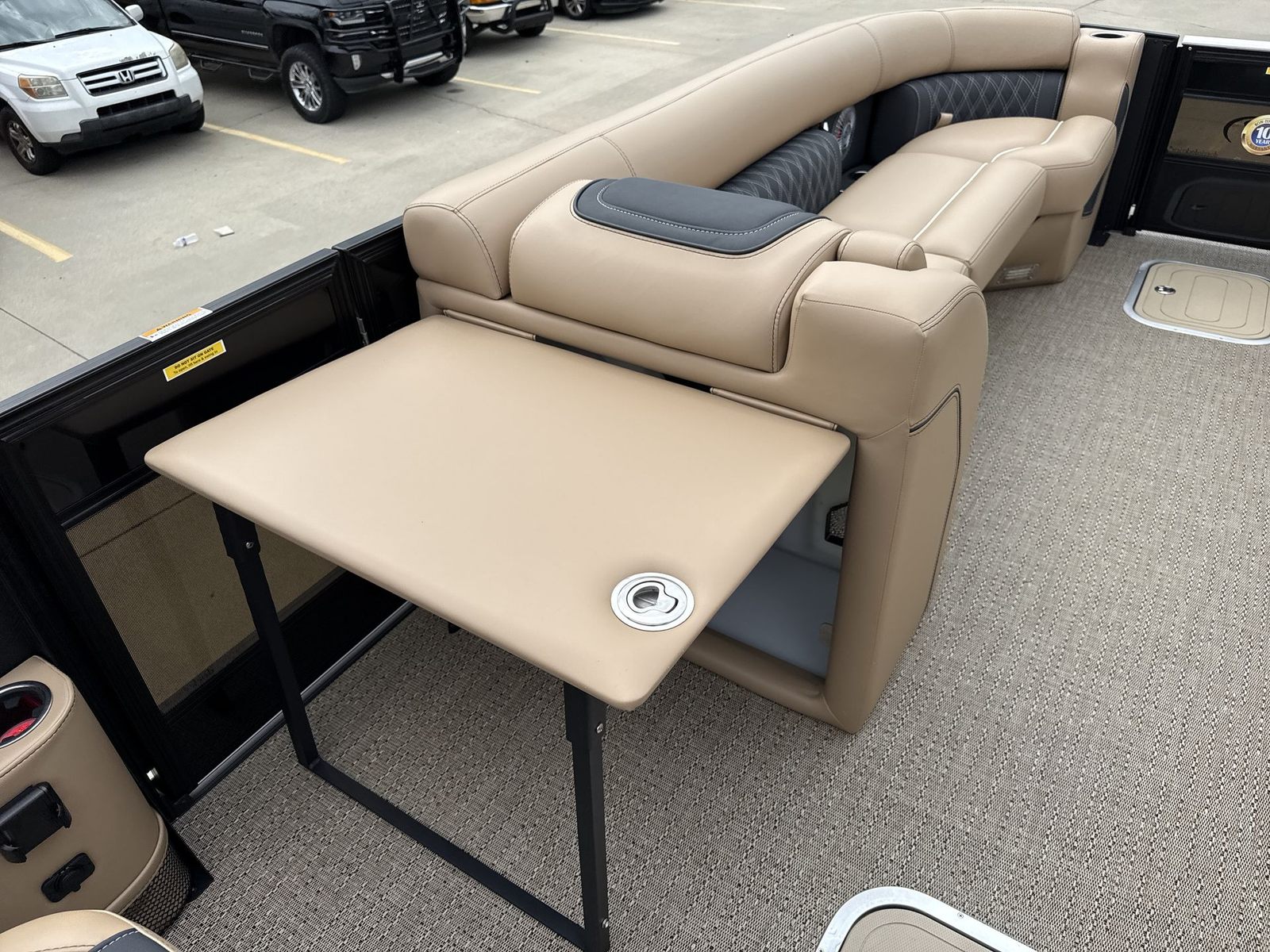 The versatility of the Barletta Lusso L25UC makes it ideal for a wide range of activities and occasions. Picture yourself embarking on a leisurely cruise around the lake, the sun shining overhead as you relax in the plush Carmella Tan seating. Host lively gatherings with friends and family, taking advantage of the spacious deck and ample seating. For those who love water sports, the powerful 300 horsepower engine provides plenty of thrust for tubing or wakeboarding. The Lusso L25UC is also perfect for romantic getaways, offering a serene and private escape on the water. Whether you’re seeking adventure, relaxation, or quality time with loved ones, this pontoon adapts to your every need.