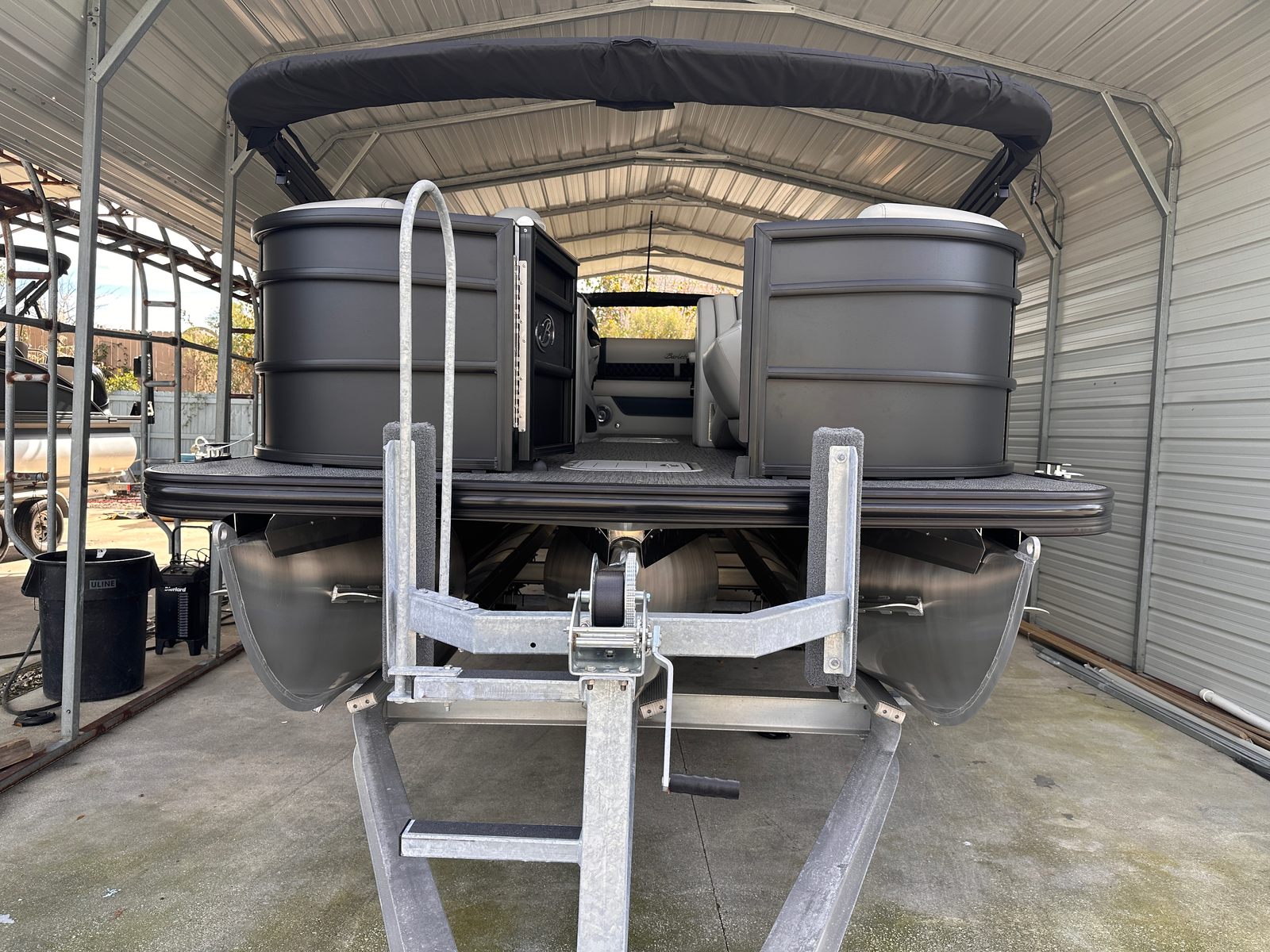 Step aboard the Barletta Lusso L25UC and discover a world of comfort and convenience. The interior features Marquesan Gray furniture with Onyx accents, creating a sophisticated and inviting atmosphere for you and your guests. The Amore Gray flooring adds a touch of elegance while providing durability and easy maintenance, perfect for active days on the water. The Coastal Edition Lusso package enhances the boat’s versatility, making it ideal for a variety of aquatic environments.One of the standout features of this pontoon boat is the double bimini setup, including an additional power bimini. This allows you to effortlessly adjust your shade and shelter, ensuring comfort during sunny afternoons or unexpected weather changes. The Matte Black sweep and accent colors, combined with the Blackout Package Lusso railskin, give the boat a unified and striking appearance that reflects your personal style.
