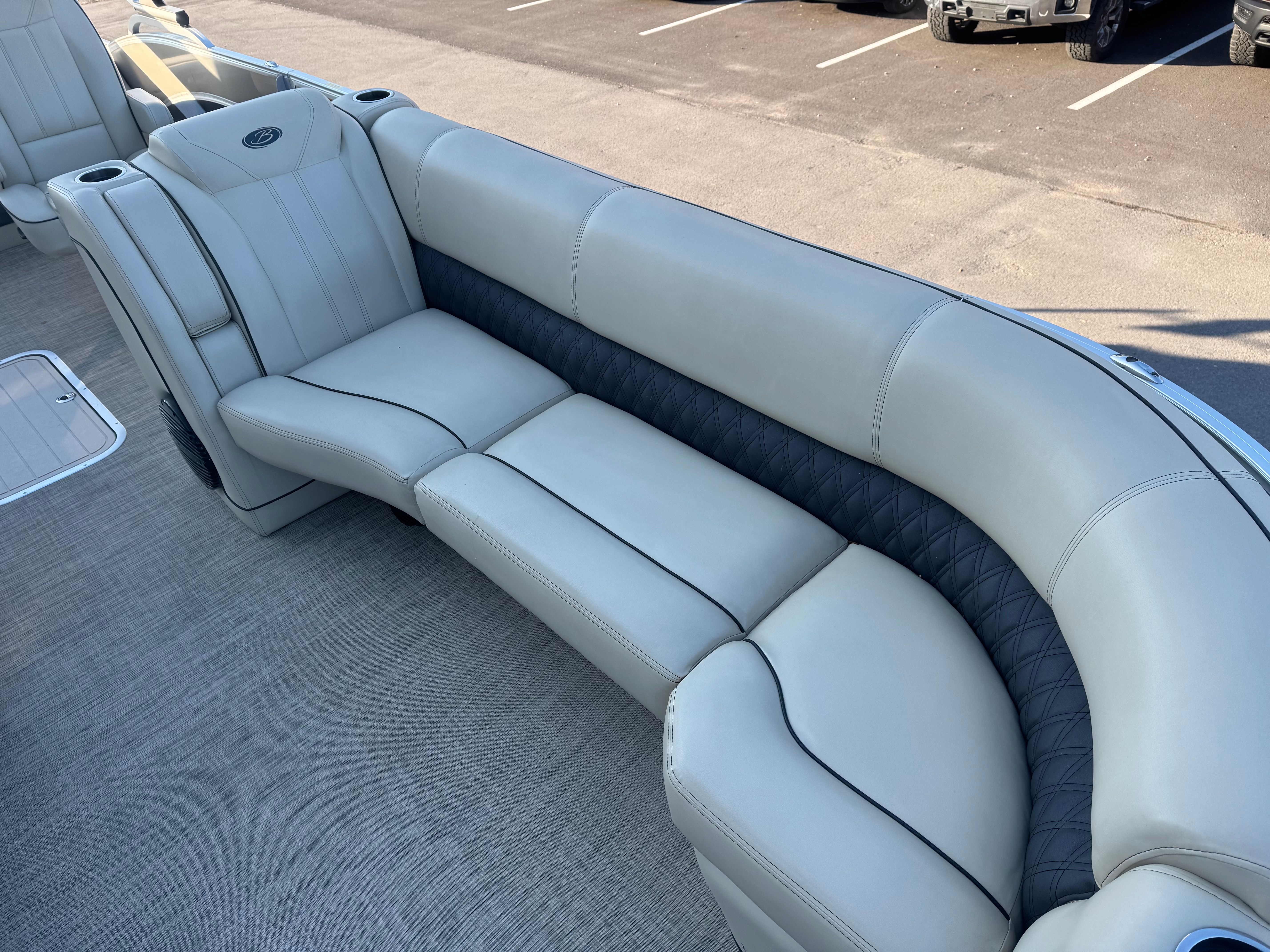 Powering the Barletta Lusso L25UC is a single engine with an impressive 300 horsepower. This robust engine ensures that you have all the power you need for smooth cruising, quick acceleration, and effortless handling. Whether you are gliding across calm waters or navigating busier channels, the Lusso L25UC delivers a responsive and exhilarating ride. The combination of a powerful engine and Barletta’s advanced pontoon design means you can enjoy both speed and stability, making every trip memorable.