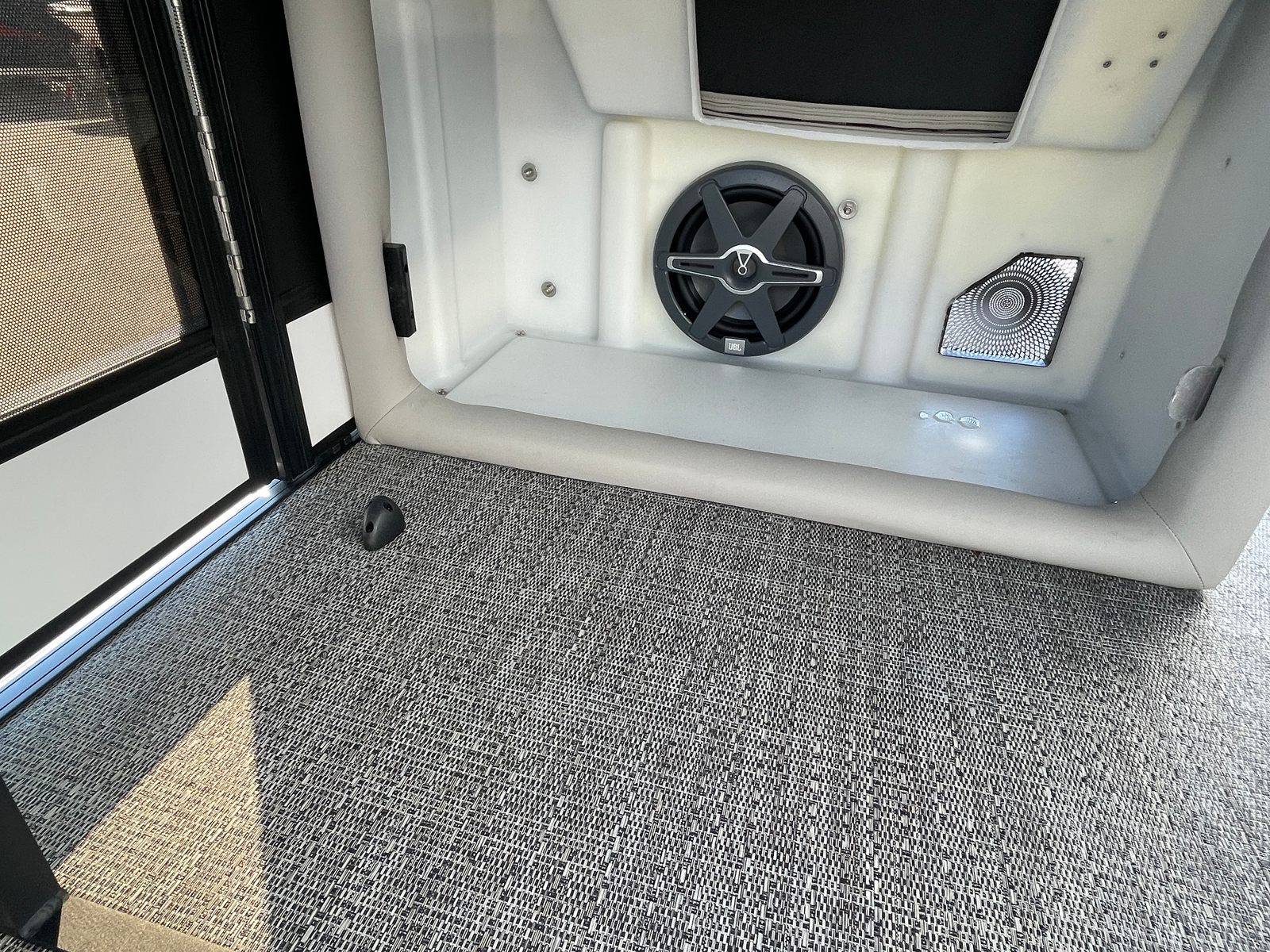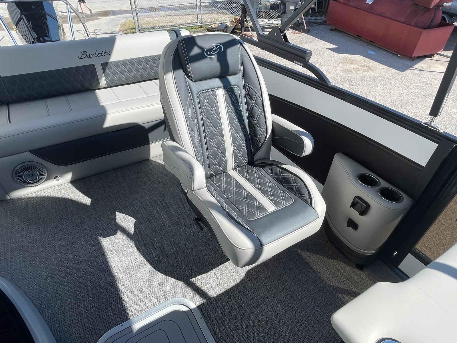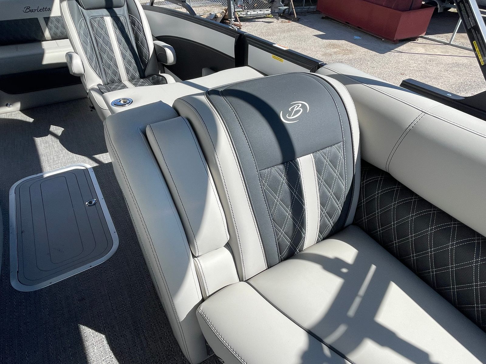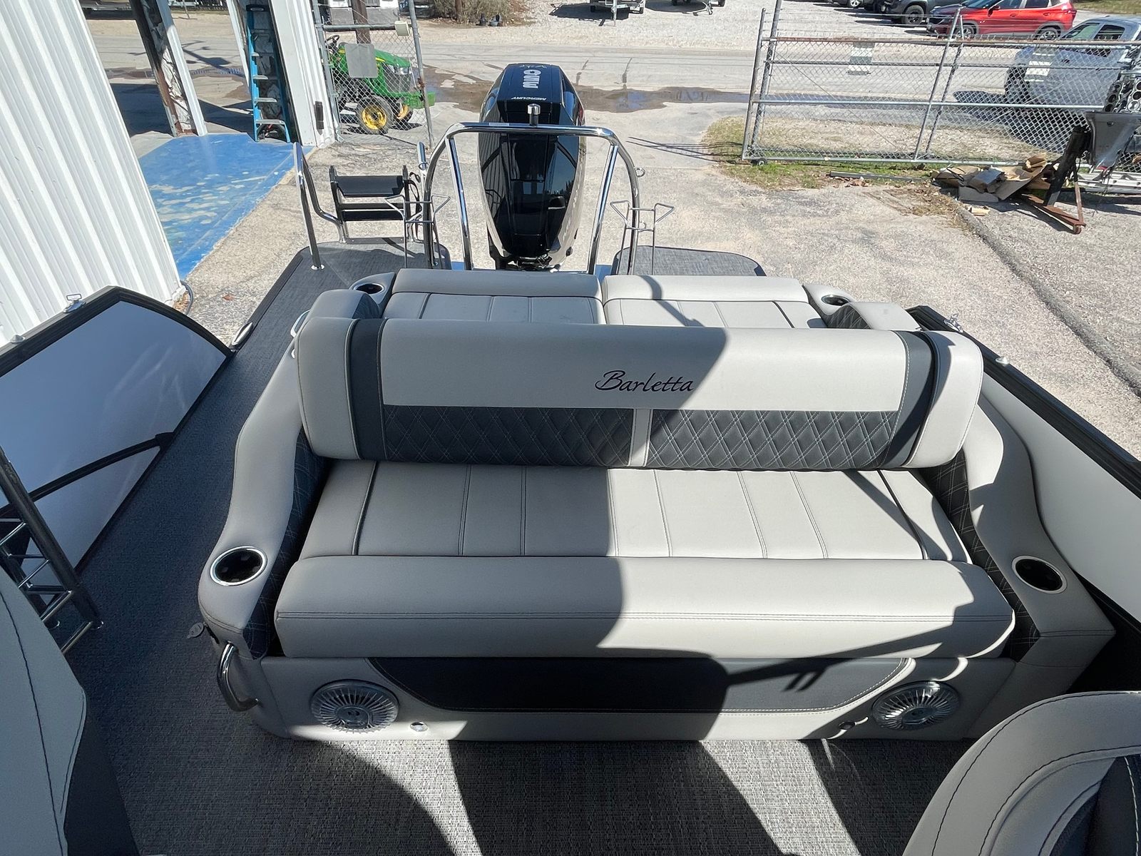 Step aboard the Barletta Lusso L25UC and you’ll immediately notice its striking aesthetics and thoughtful features. The sweep color in Winter White and accent color in Matte Black create a sophisticated, modern look, complemented by the Blackout Package Lusso for added visual impact. The furniture is finished in Marquesan Gray with Onyx, offering both comfort and elegance, while the Amore Gray flooring provides a durable and stylish foundation for every activity.Enjoy shade and protection from the elements with the double bimini, including an additional power bimini for effortless adjustment. The Metal Jacket Protectant ensures your pontoon boat stays looking its best, safeguarding against the rigors of sun, water, and weather. Every detail of the Lusso L25UC is designed to enhance your time on the water, from the premium materials to the innovative features that elevate your boating lifestyle.