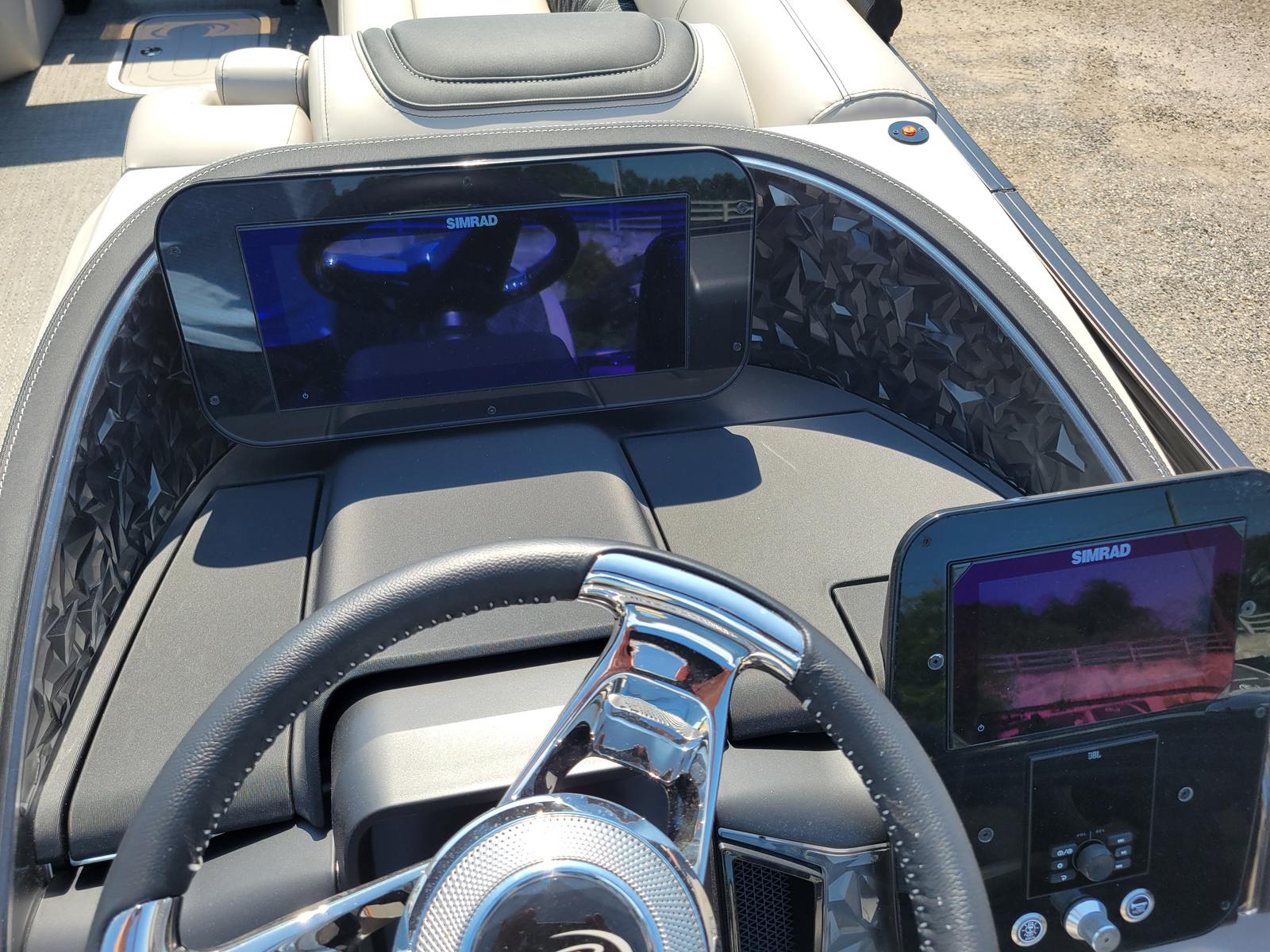 The Barletta Lusso L25UC is packed with premium features that set it apart from other pontoon boats for sale. The Coastal Edition Lusso brings added durability and style, perfect for those who love to explore a variety of waterways. The double bimini setup, including an additional power bimini, offers versatile shade options, allowing you to enjoy sunny days in comfort or create a cool retreat when needed. The Blackout Package Lusso railskin adds a bold, contemporary look, while the Marquesan Gray furniture with Onyx accents ensures every seat is as comfortable as it is stylish. The Amore Gray flooring is both elegant and practical, providing a non-slip surface that’s easy to maintain.