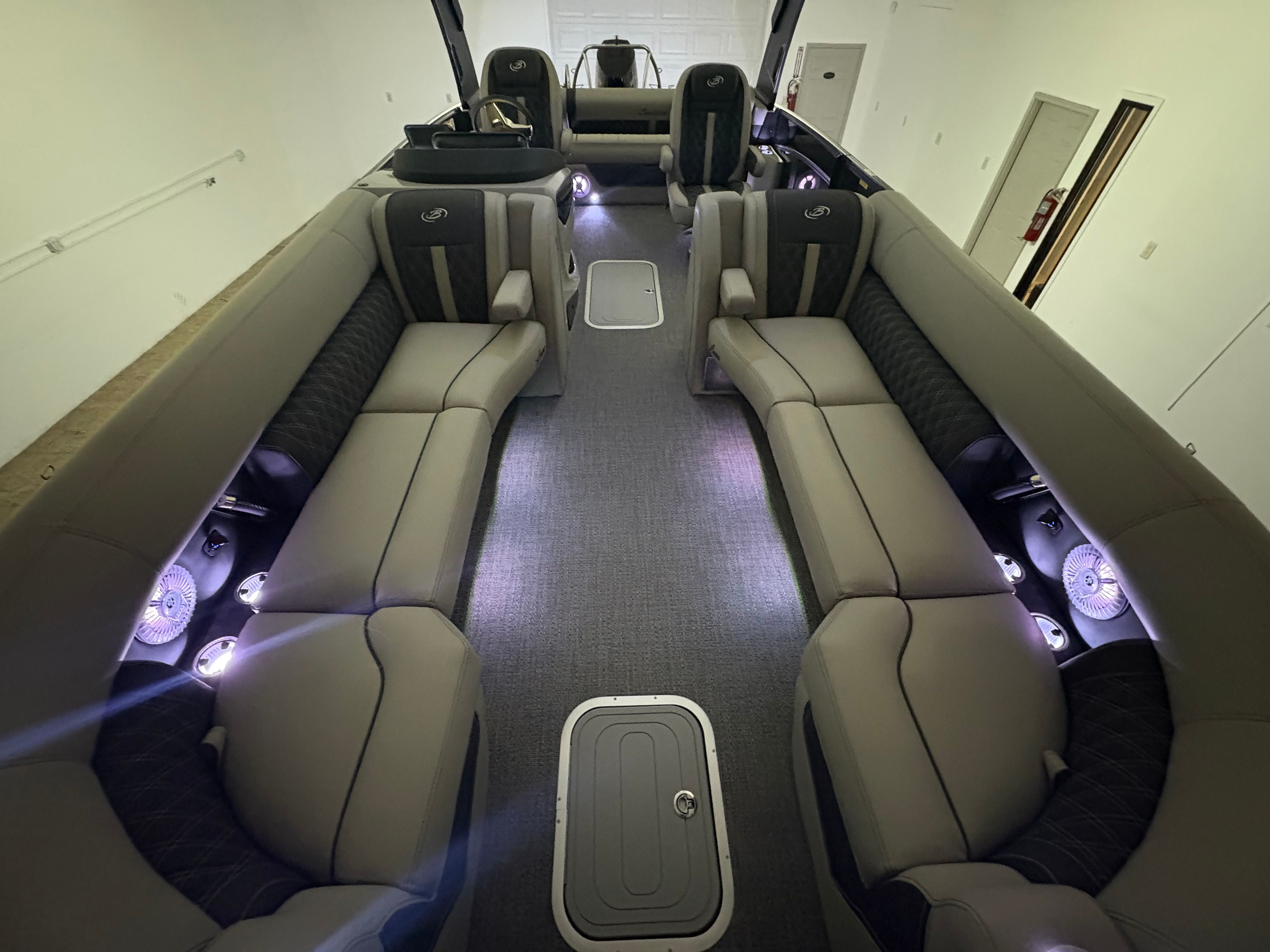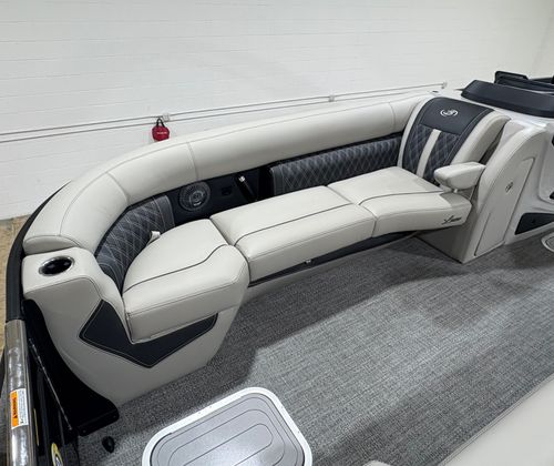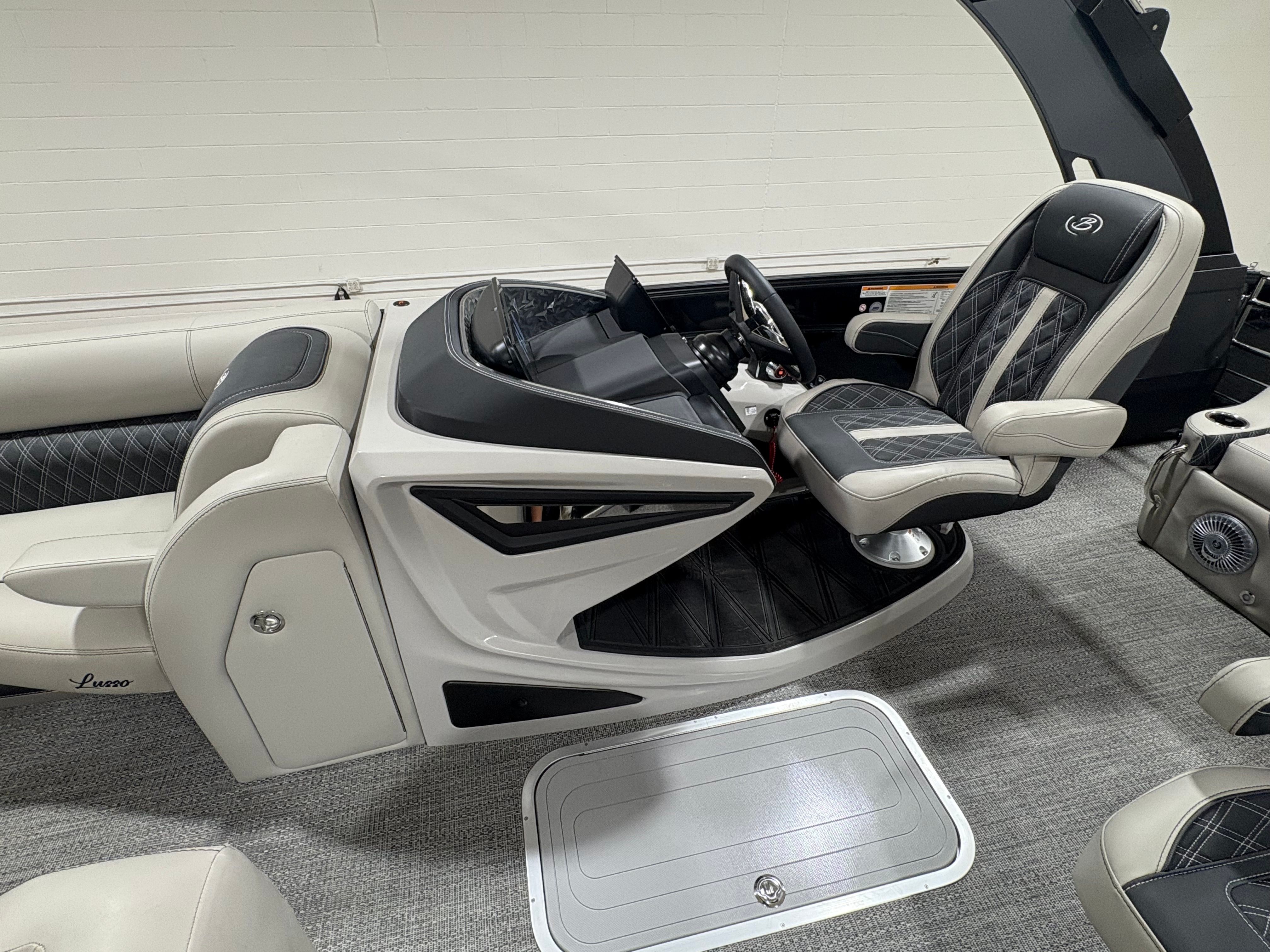 The Lusso L25UCA is designed with practicality in mind, making ownership as enjoyable as the time spent on the water. Its generous length of 27.5 feet provides ample storage space for gear, water toys, and personal items, keeping the deck clutter-free and organized. The pontoon’s layout makes docking and maneuvering straightforward, even for those new to boating.Fuel efficiency is enhanced by the Mercury 400L V10 Verado engine, allowing you to spend more time cruising and less time refueling. The durable flooring and high-quality furniture are easy to clean and maintain, ensuring your boat stays looking its best season after season. With thoughtful engineering and user-friendly features, the Lusso L25UCA is as practical as it is luxurious.