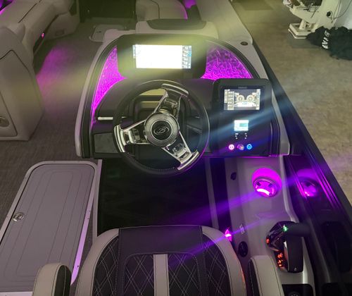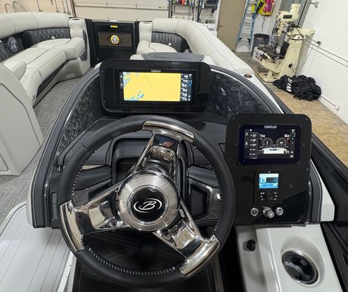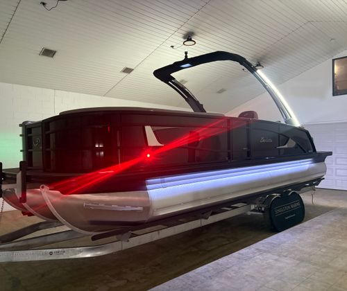 The 2026 Barletta Lusso L25UCA is packed with premium features designed to elevate your boating experience. The striking Sweep Color and Accent Color in Black Diamond create a bold, modern aesthetic, complemented by the Blackout Package Lusso railskin for a sleek, unified look. Inside, the Marquesan Gray furniture with Onyx accents offers plush seating and sophisticated style, while the Amore Gray flooring provides durability and comfort underfoot.Exterior lighting, including white underdeck and underwater illumination, adds a touch of elegance and enhances visibility during evening cruises. The Mercury Digital Pre-Rig for V10 ensures seamless integration with the engine, while the rigging with a V10 prop maximizes performance and efficiency. Every detail of the Lusso L25UCA is thoughtfully designed to provide both luxury and functionality, setting a new standard for pontoon boats.