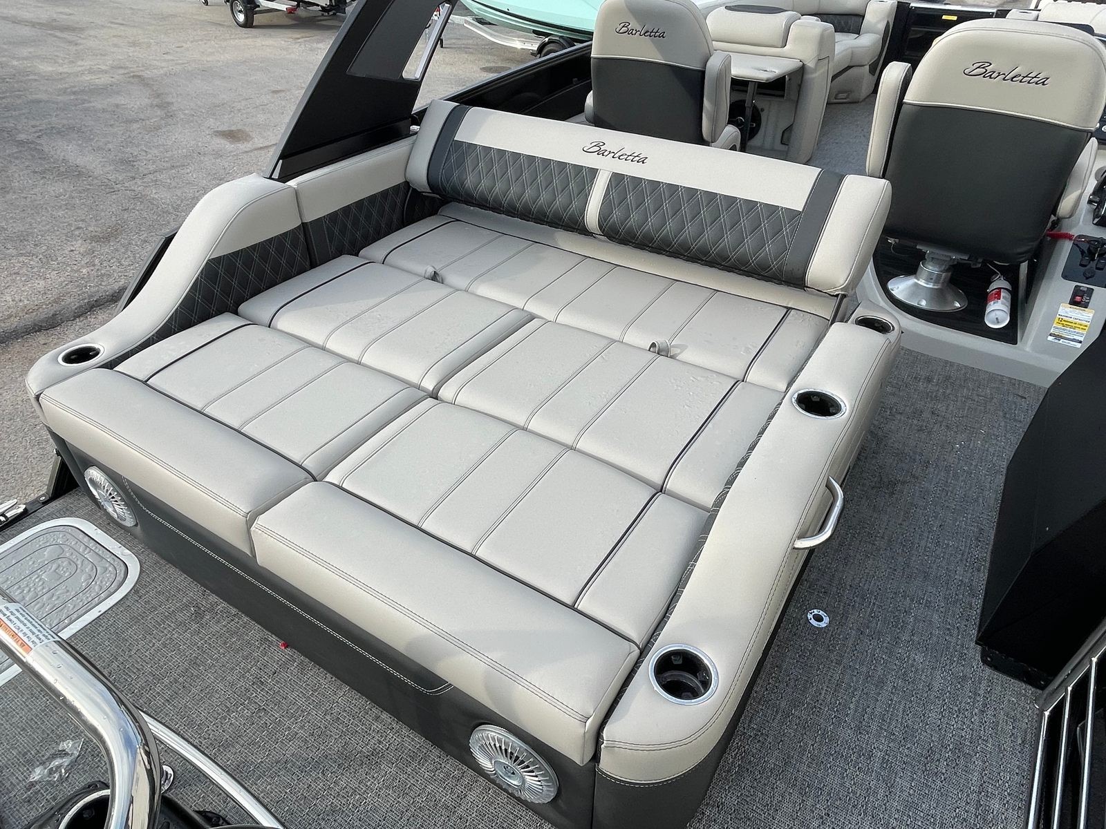 At the heart of the Barletta Lusso L25UCA is a powerful 400-horsepower engine, ensuring that every journey is smooth, responsive, and exhilarating. This pontoon boat is engineered for optimal performance, offering swift acceleration and effortless cruising across lakes, rivers, and coastal waters. The robust engine provides ample power for towing water toys, reaching your favorite destinations quickly, and handling a variety of water conditions with confidence. Whether you’re gliding across calm waters or navigating a lively lake, the Lusso L25UCA’s performance capabilities make every trip enjoyable and stress-free.