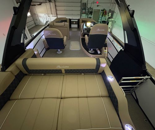 The 2026 Barletta Lusso L25UCA stands out as a premier pontoon boat for sale, offering a harmonious blend of luxury, performance, and practicality. With its powerful Mercury 300L Verado V8 engine, stunning Winter White and Blackout Package Lusso exterior, plush Carmella Tan with Onyx furniture, and advanced digital controls, this Barletta boat for sale is designed to exceed expectations. The thoughtful features, including hydraulic and power assist steering, digital gauges, and captivating exterior lighting, ensure every outing is enjoyable and stress-free. If you are ready to elevate your boating experience and create lasting memories on the water, the Barletta Lusso L25UCA is the ultimate choice. Contact your local dealer today to learn more about this exceptional pontoon boat and take the first step toward your next adventure.