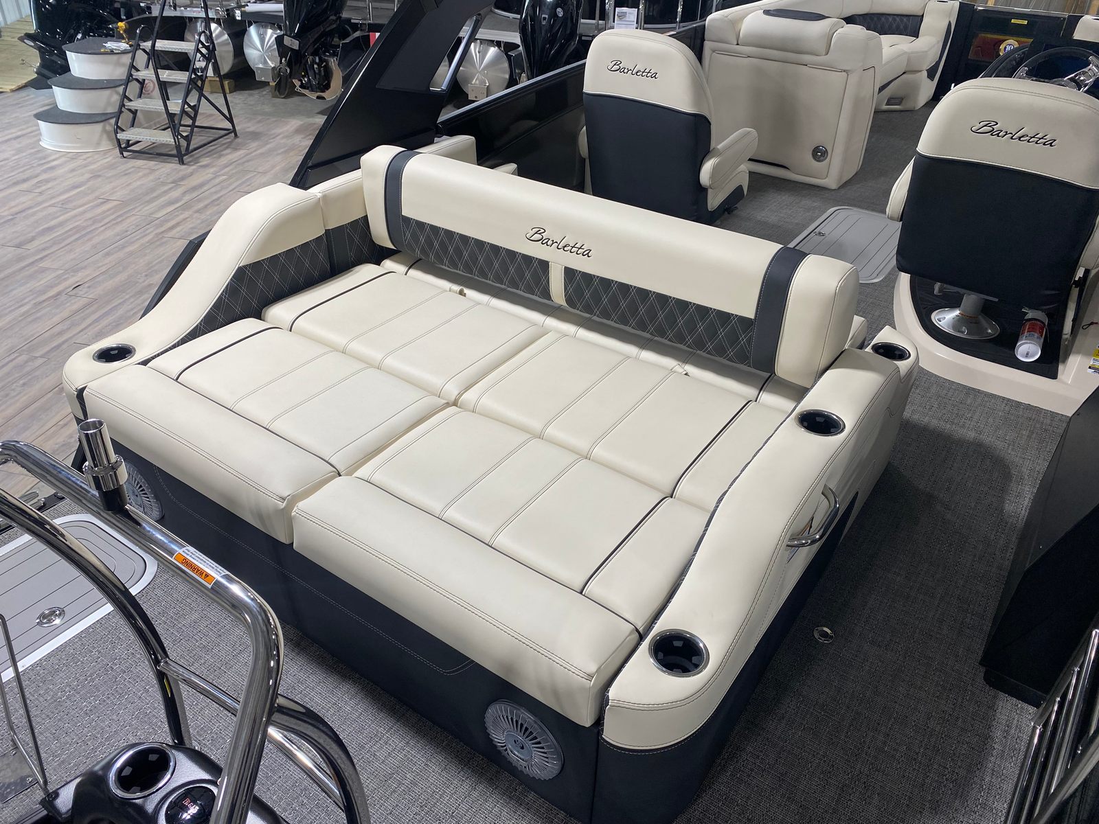 Beyond its beauty and performance, the Barletta Lusso L25UCA offers practical advantages that make ownership a breeze. The spacious deck provides plenty of room for gear, coolers, and water toys, making it easy to prepare for a day of fun. The pontoon’s design facilitates easy docking, so you can pull up to your favorite waterfront restaurant or marina with confidence. The efficient Mercury V10 Verado engine helps keep fuel costs manageable, allowing you to spend more time on the water and less time at the pump.Maintenance is straightforward thanks to the high-quality flooring and durable furniture, which are designed to withstand the rigors of regular use. The advanced lighting system not only enhances safety but also makes nighttime docking and storage simpler. Whether you’re a seasoned boater or new to the lifestyle, the Lusso L25UCA is engineered to make every aspect of ownership enjoyable and stress-free.