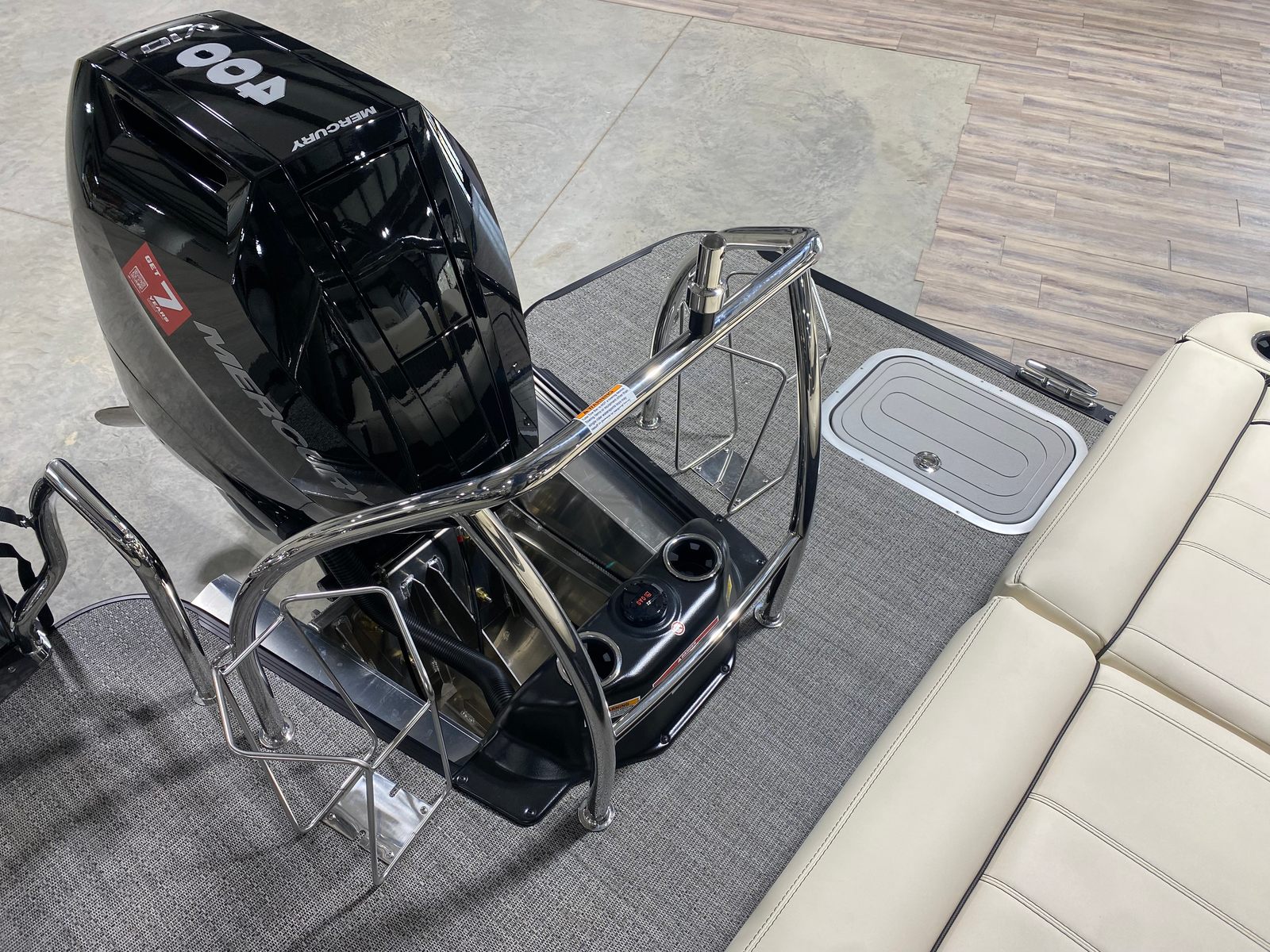 Powering this pontoon is the formidable Mercury (D) 400L V10 Verado engine, delivering an impressive 400 horsepower. This engine is expertly paired with Mercury Digital Pre-Rig for V10 and a rig engine with V10 prop, ensuring smooth, responsive handling and exhilarating acceleration. Whether you’re cruising at a leisurely pace or opening up the throttle for some high-speed fun, the Lusso L25UCA offers a dynamic and reliable performance. The advanced engineering of the Mercury V10 Verado means you can expect efficient fuel consumption, quiet operation, and minimal vibration, making every journey as enjoyable as the destination.