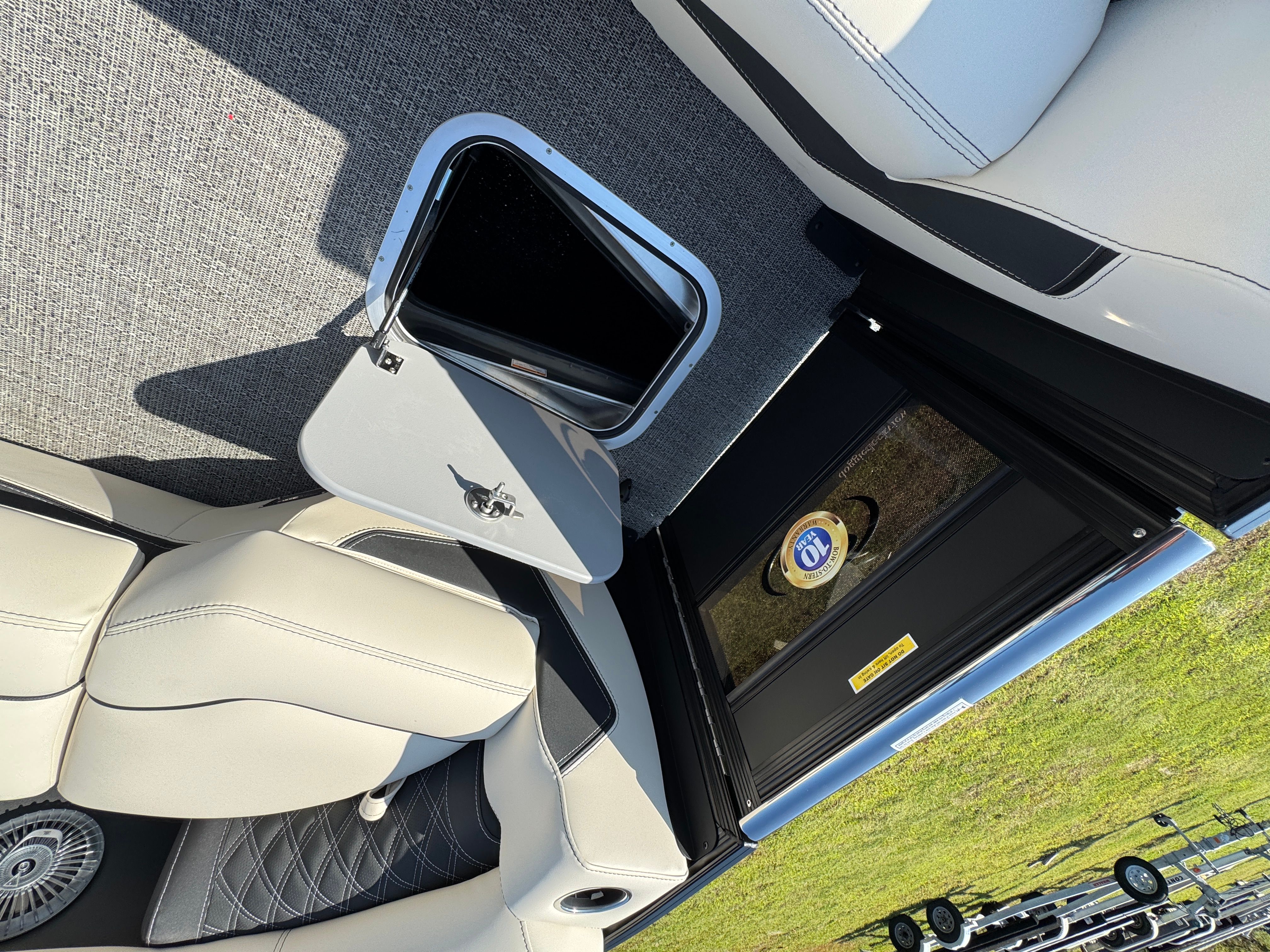 The Barletta Lusso L25UCA is designed with practicality in mind, making ownership both convenient and enjoyable. The ample storage options allow you to stow away gear, water toys, and personal items with ease, keeping the deck clutter-free and organized. The sturdy stainless steel safety stanchions with chains offer peace of mind, especially when children or pets are onboard. Docking is simplified thanks to the boat’s responsive handling and manageable length, making it easy to maneuver in tight spaces or busy marinas. The efficient Mercury V10 engine helps maximize fuel economy, so you can spend more time enjoying the water and less time refueling.