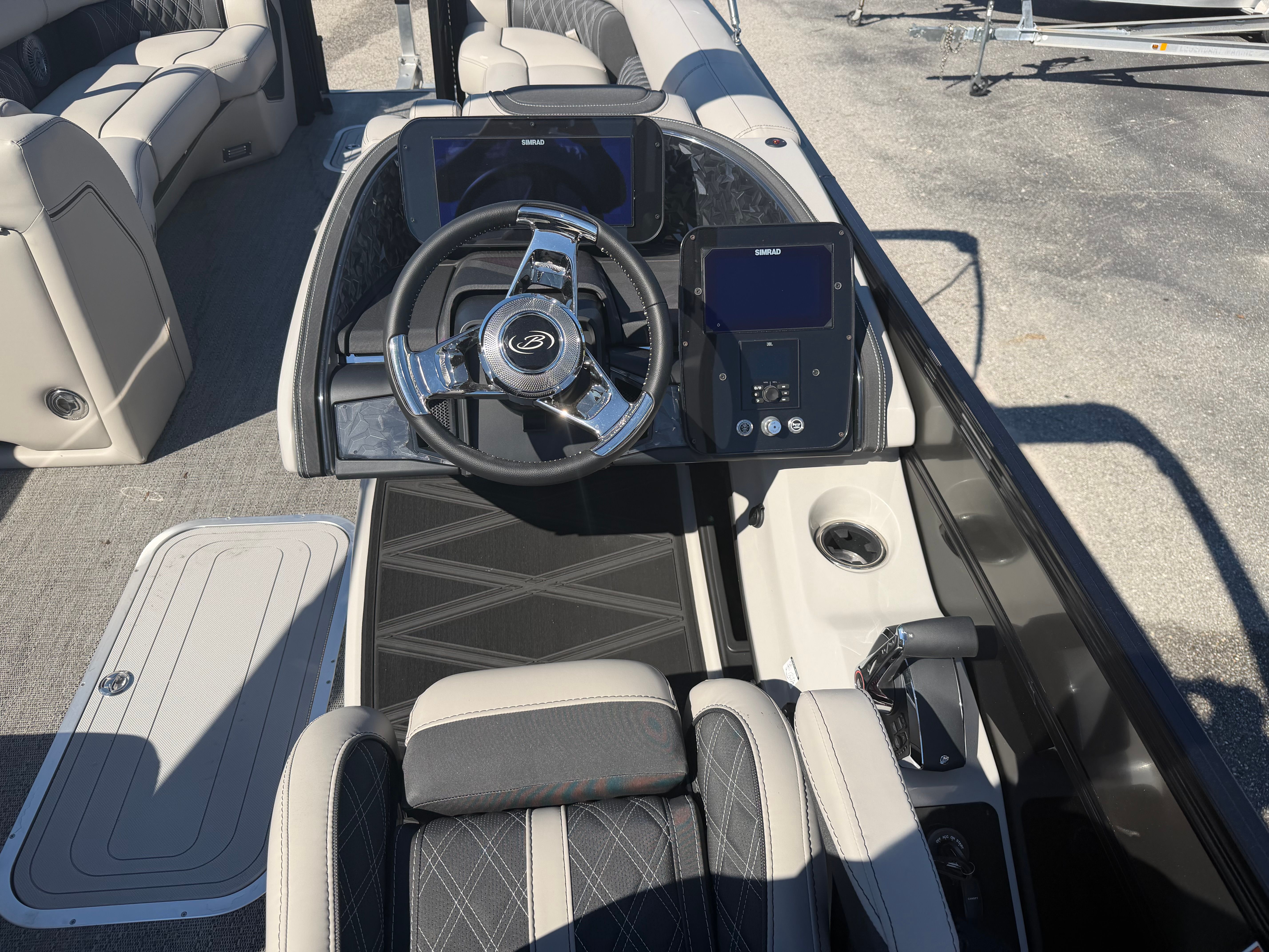 When it comes to performance, the Barletta Lusso L25UCA stands out from the crowd. Powered by a single Mercury 300L Verado V8 engine, this pontoon delivers an exhilarating 300 horsepower, ensuring smooth acceleration and impressive speed. The Mercury Digital DTS Pre-Rig for VERADO engines with Vessel Link provides seamless integration and precise control, making every ride effortless and enjoyable. Hydraulic and power assist steering allow for responsive handling, whether you’re navigating tight docks or open waters. The stainless steel prop ensures durability and optimal performance, while digital gauges keep you informed and in command at all times.