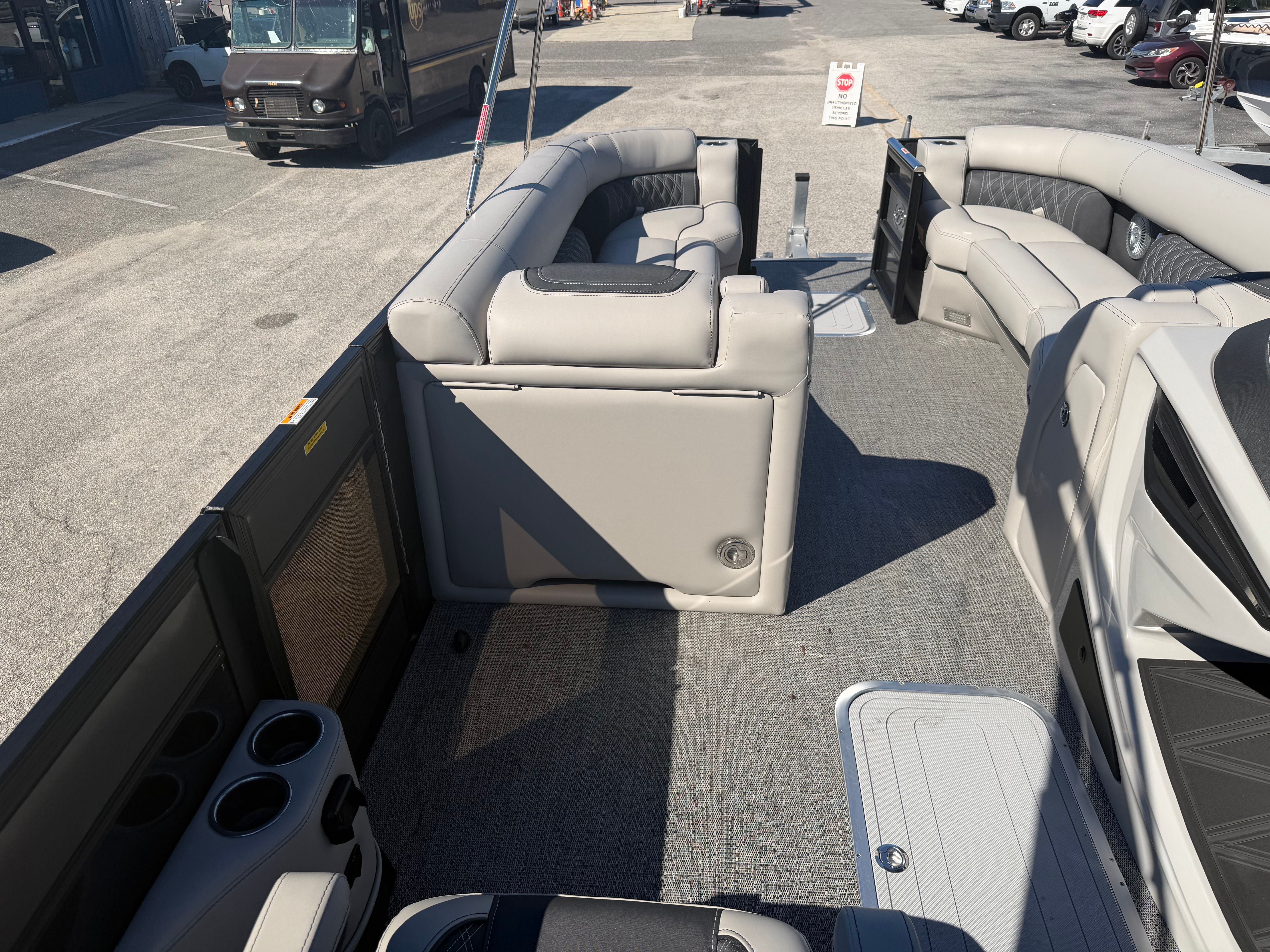 Owning the Barletta Lusso L25UCA pontoon boat means embracing a lifestyle of fun, relaxation, and adventure. The spacious deck is perfect for hosting gatherings, enjoying meals, or simply soaking up the sun. With its luxurious seating and open layout, you’ll have plenty of room for family and friends to join in the fun. The powerful Mercury 300L Verado V8 engine ensures you can explore new destinations with confidence, while the advanced steering and digital controls make every trip smooth and enjoyable. Whether you’re cruising at sunset, anchoring for a swim, or celebrating a special occasion, this pontoon boat offers the perfect setting for creating lasting memories.