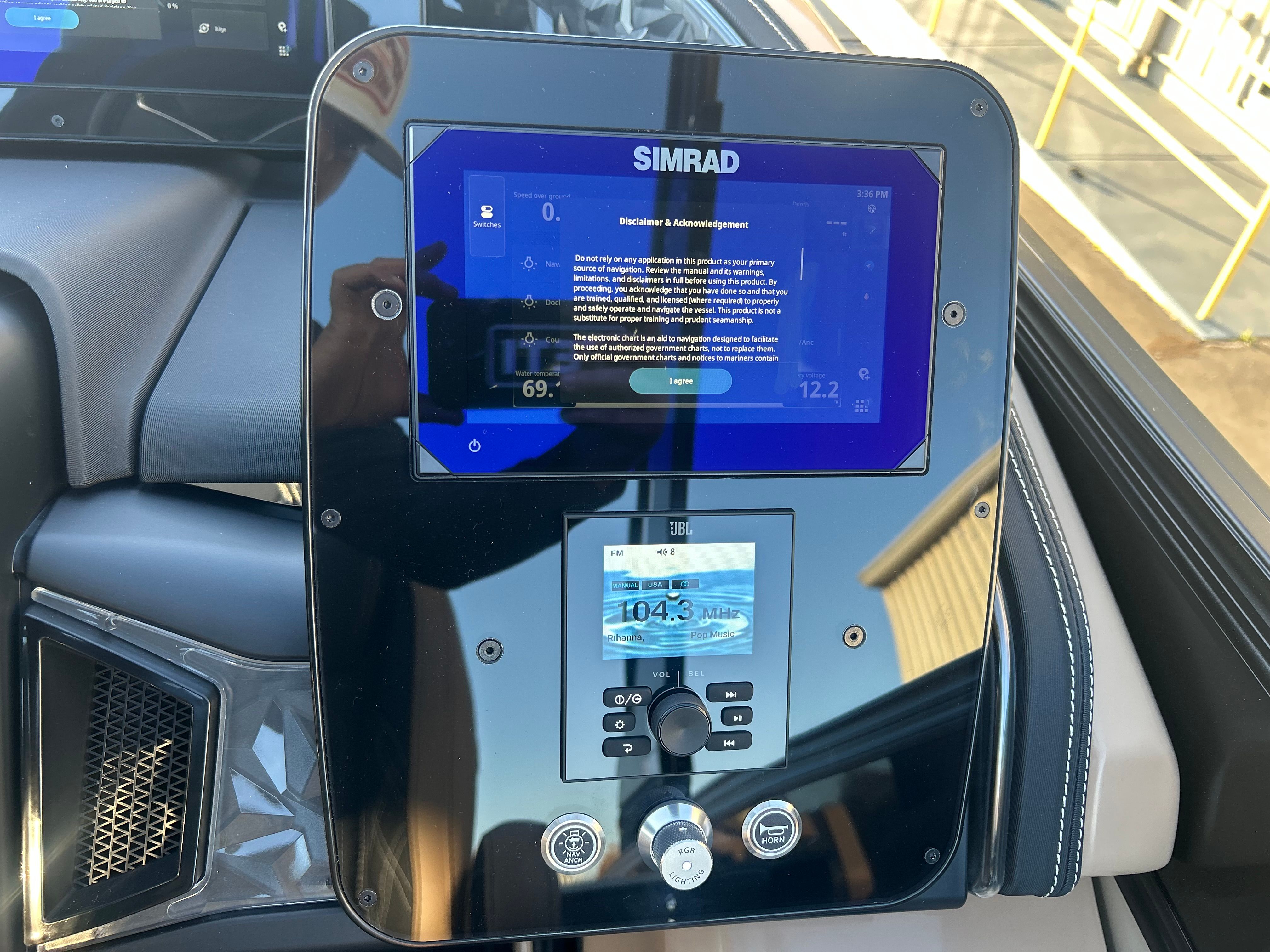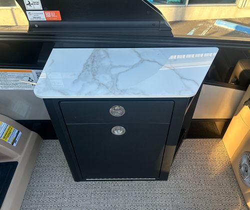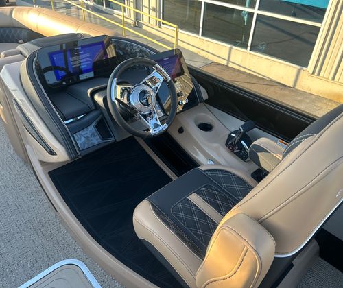 Powering the Barletta Lusso L25UE is a robust Mercury (D) 300L Verado V8 engine, delivering an impressive 300 horsepower. This single-engine setup ensures smooth, responsive acceleration and reliable performance, whether you are cruising at a leisurely pace or picking up speed for watersports. The Mercury Digital DTS Pre-Rig for VERADO engines with Vessel Link provides seamless integration and precise control, while the hydraulic and power assist steering make maneuvering effortless. Digital gauges keep you informed at a glance, and the rigged engine with a stainless steel prop ensures optimal efficiency and durability on every outing.