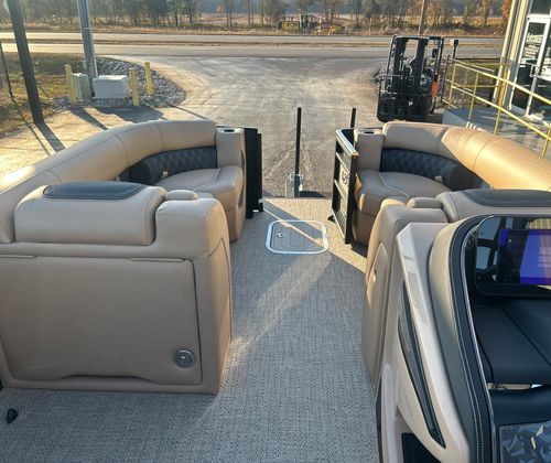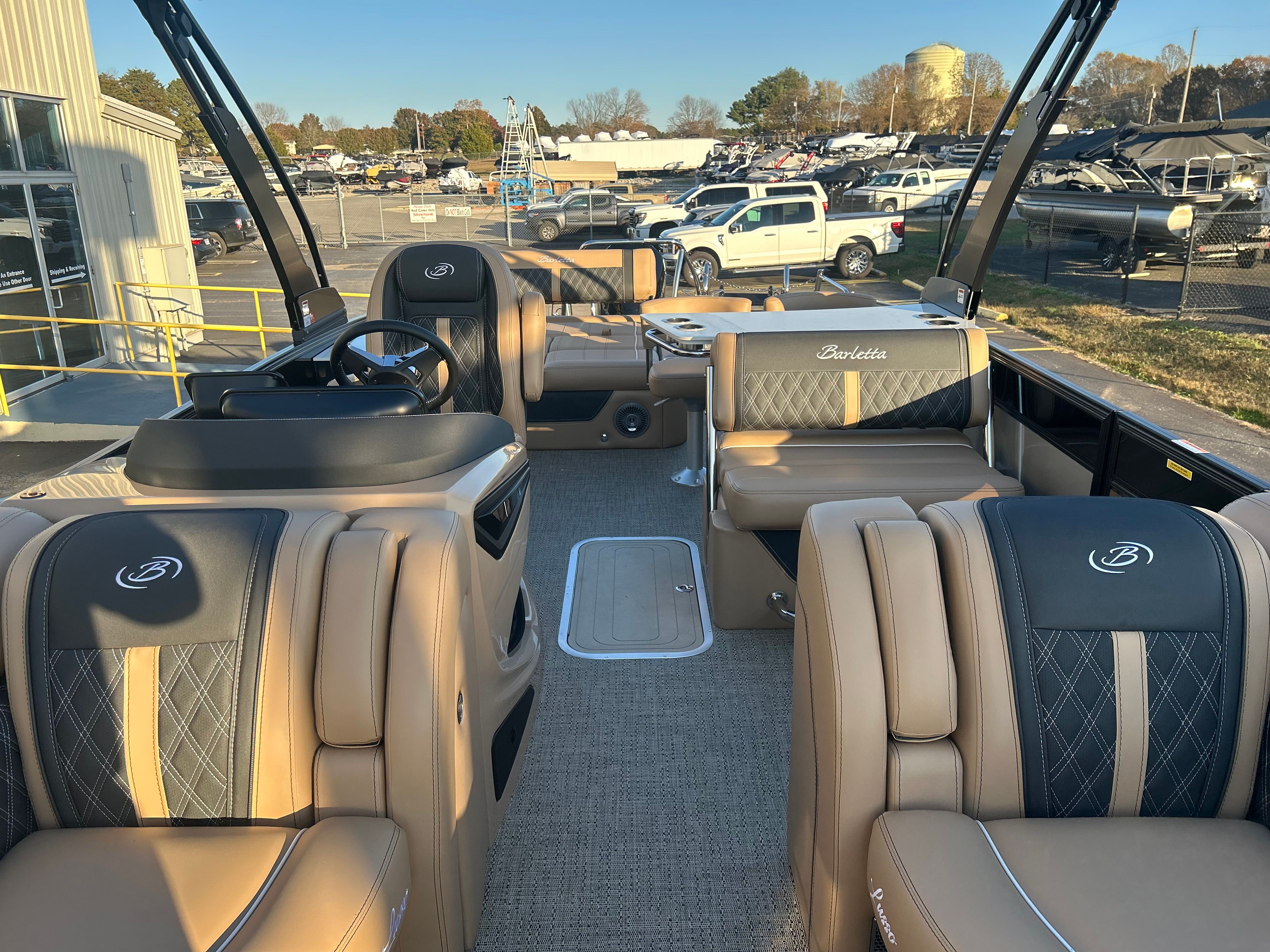 The 2026 Barletta Lusso L25UE is more than just a pontoon boat for sale; it is an invitation to elevate your boating experience. With its striking Black Diamond and Champagne color scheme, luxurious Carmella Tan with Onyx furniture, and advanced Mercury 300L Verado V8 engine, this Barletta boat for sale offers the perfect blend of style, performance, and comfort. The Blackout Package Lusso, Sport Bimini, and onboard battery charger are just a few of the features that set this model apart. If you are ready to enjoy the ultimate in leisure, entertainment, and adventure on the water, the Barletta Lusso L25UE is the boat you have been waiting for. Contact your local dealer today to learn more and take the first step toward making unforgettable memories on the water.