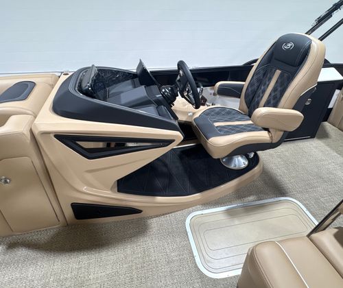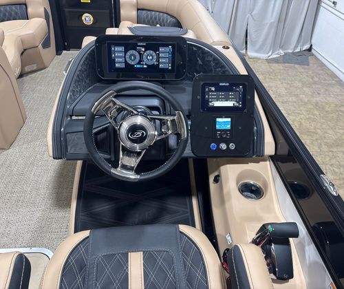 The 2026 Barletta Lusso L25UE is loaded with premium features designed to enhance your time on the water. The Blackout Package Lusso railskin adds a bold, modern touch to the exterior, while the Metal Jacket Protectant ensures long-lasting durability and protection against the elements. The Carmella Tan with Onyx furniture offers plush, ergonomic seating for you and your guests, and the Amore Tan flooring provides a comfortable, slip-resistant surface underfoot.For added convenience and safety, the Lusso L25UE is equipped with Mercury Digital DTS Pre-Rig for VERADO engines with Vessel Link, allowing for advanced digital controls and monitoring. The hydraulic and power assist steering system makes docking and navigating tight spaces a breeze, and the digital gauges keep you informed of all critical engine data at a glance. The rigged engine with a stainless steel prop ensures optimal performance and longevity, while the exterior lighting package—including white underdeck and underwater lights—creates a captivating ambiance for evening cruises and nighttime gatherings.