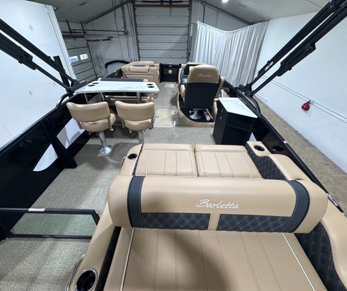 In summary, the 2026 Barletta Lusso L25UE is a top-tier pontoon boat that combines cutting-edge technology, luxurious comfort, and stunning style. With its powerful Mercury 300L Verado V8 engine, advanced digital controls, and premium features like the Blackout Package Lusso, Carmella Tan with Onyx furniture, Amore Tan flooring, and captivating exterior lighting, this boat is designed to deliver exceptional performance and unforgettable experiences on the water.If you’re searching for a pontoon boat for sale that offers the perfect blend of elegance, power, and versatility, the Barletta Lusso L25UE is the ultimate choice. Don’t miss your chance to own this remarkable vessel—contact your local dealer today to learn more and start your next adventure on the water.
