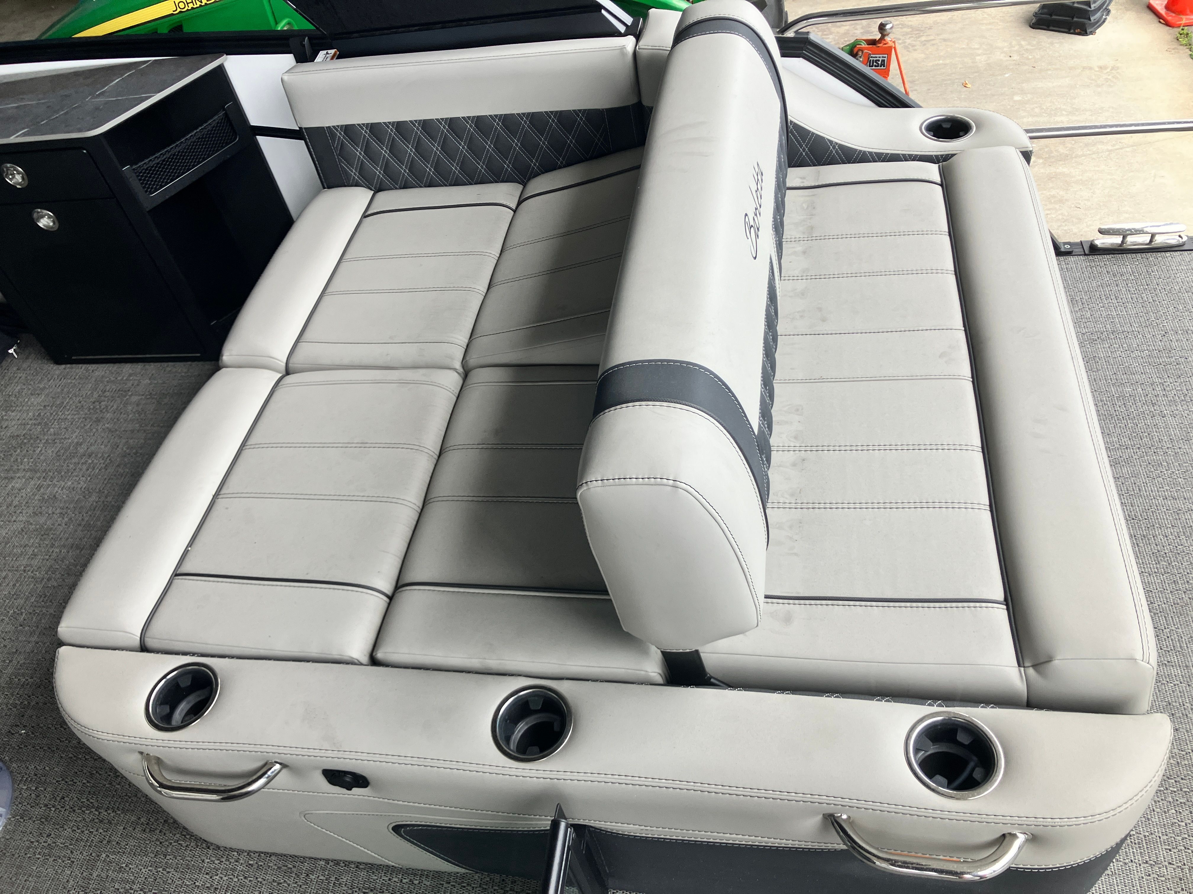 Owning the Barletta Lusso L25UEA means embracing a lifestyle of leisure, luxury, and fun. The spacious deck layout is perfect for hosting gatherings, whether you’re celebrating a special occasion or enjoying a casual day with loved ones. The plush seating invites you to unwind, while the ample space ensures everyone has room to stretch out and enjoy the ride.The Lusso L25UEA’s advanced engine and rigging deliver a smooth, quiet ride, making it easy to converse, listen to music, or simply soak in the natural beauty around you. The double bimini arches offer flexible shade options, so you can stay cool and comfortable even during the hottest summer days. With its elegant color scheme and high-end finishes, this pontoon boat is sure to turn heads wherever you go.