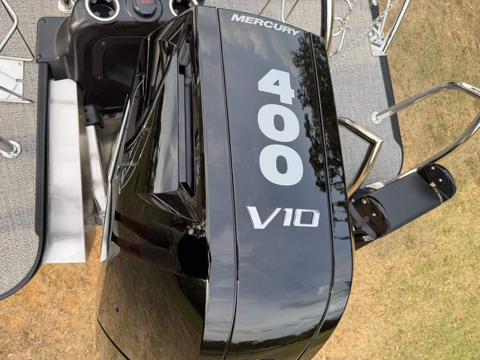 Power and precision are at the heart of the Barletta Reserve Leggera 23UCA. Equipped with a single Mercury (D) 400L V10 Verado engine, this pontoon delivers an impressive 400 horsepower, ensuring exhilarating acceleration and smooth cruising. The Mercury Digital Pre-Rig for V10 and the expertly rigged engine with a V10 prop guarantee optimal performance and reliability. The AccuThruster System at the helm provides enhanced maneuverability, making docking and navigating tight spaces effortless. Whether you are looking for a leisurely cruise or a high-speed adventure, this pontoon boat offers a dynamic and responsive ride every time you hit the water.