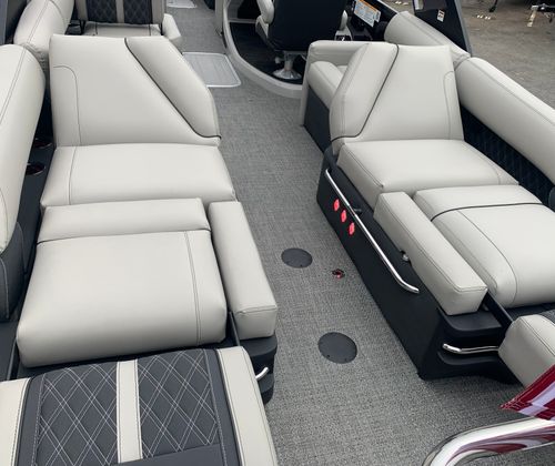 Beyond its stunning appearance and impressive performance, the Barletta Reserve Leggera R26MA is engineered for practicality and ease of ownership. The spacious deck layout provides ample storage options for gear and personal items, ensuring that everything you need for a day on the water is within easy reach. The advanced AccuThruster System simplifies docking and maneuvering, reducing stress and making it easier to enjoy your time on the water.The durable Amore Gray flooring is designed to withstand the rigors of frequent use, making cleaning and maintenance a simple task. The thoughtfully designed interior with an aft divider allows for flexible seating arrangements and added privacy, catering to a variety of activities and group sizes. Whether you are hosting a lively gathering or seeking a peaceful retreat, this pontoon boat adapts to your needs with ease.