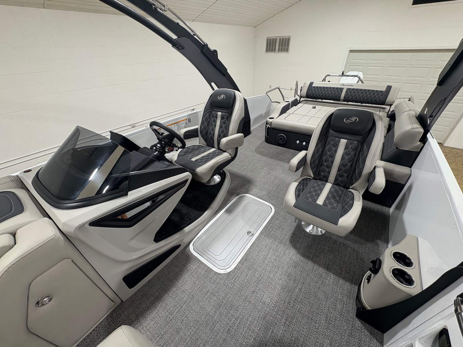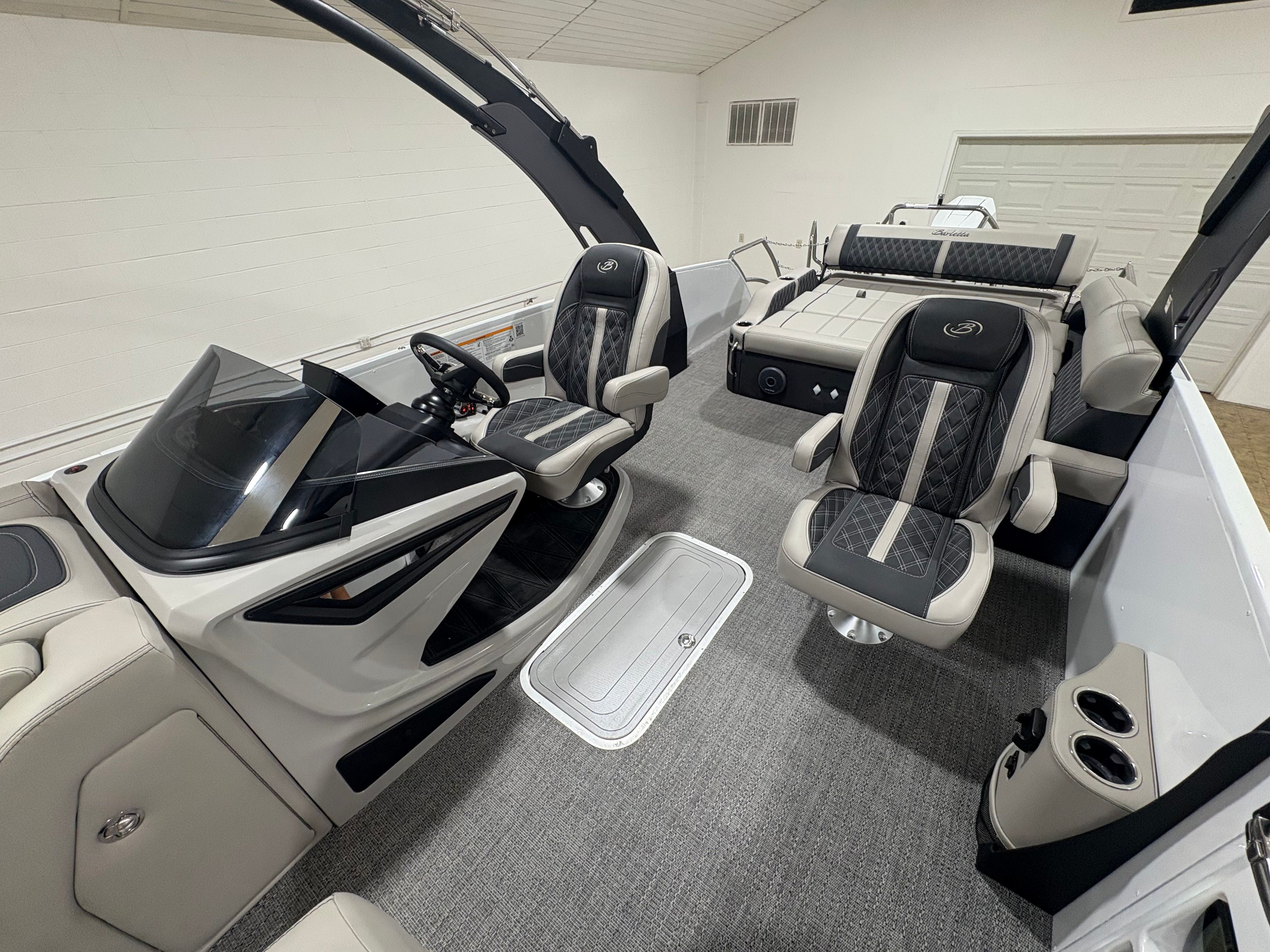 The Barletta Reserve Leggera R26UCA is as practical as it is luxurious. Its generous length provides plenty of space for storage, allowing you to bring along all the gear, snacks, and water toys you need for a day on the water. The AccuThruster System simplifies docking, making it easy to maneuver in tight spaces or busy marinas. The durable Amore Gray flooring is designed to withstand the rigors of active use, while remaining comfortable underfoot.Fuel efficiency is enhanced by the advanced Mercury V10 Verado engine, allowing you to spend more time enjoying the water and less time refueling. The helm windshield not only adds to the boat’s sleek appearance but also improves visibility and comfort for the captain, ensuring a safe and enjoyable journey for everyone on board.