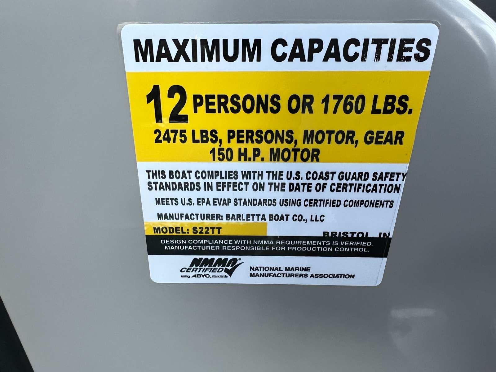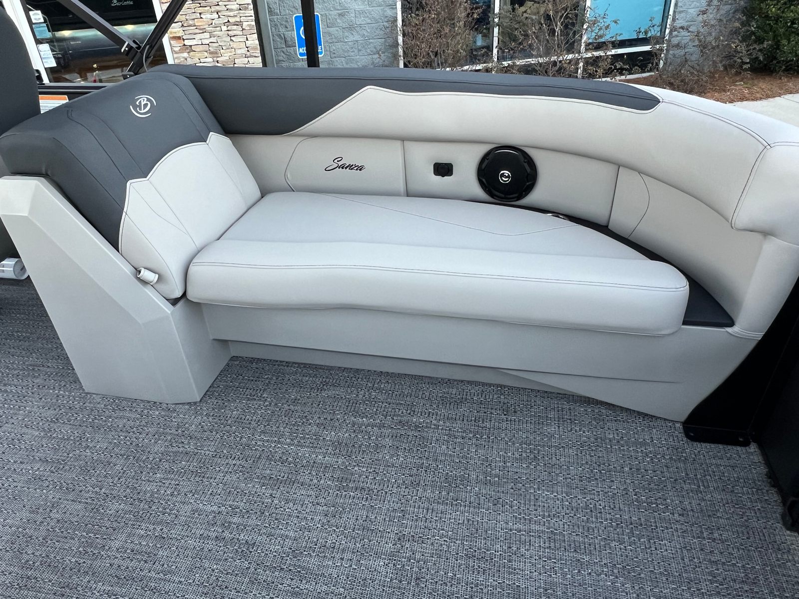 The 2026 Barletta Sanza S22QC is a brand-new pontoon boat that measures 21.5 feet in length, offering ample space for relaxation, socializing, and fun-filled activities on the water. As a Barletta boat for sale, this model showcases the renowned craftsmanship and attention to detail that the brand is known for. The sleek Matte Black Railskin color, paired with the exclusive Blackout Package Sanza, gives this pontoon a bold and modern appearance that is sure to turn heads at the marina or out on the open water.