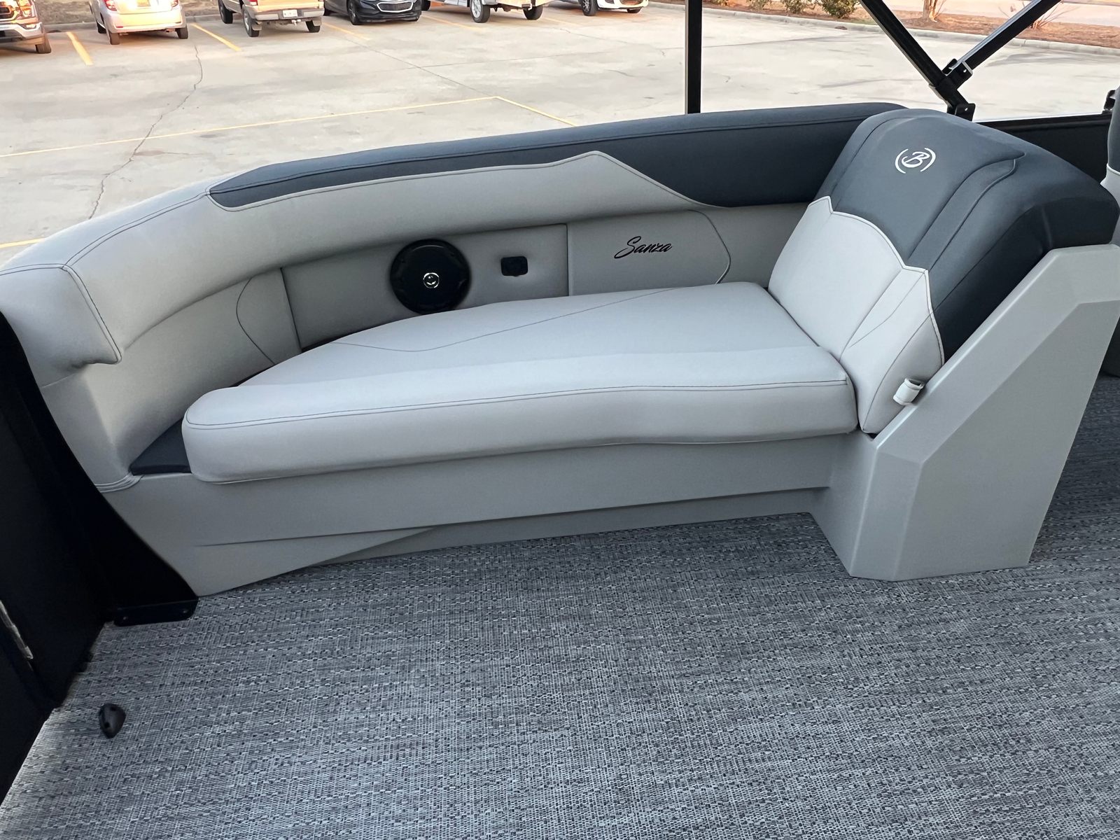 The versatility of the Barletta Sanza S22QC makes it the perfect companion for a wide range of activities. Imagine spending sunny afternoons cruising with family, anchoring at your favorite swimming spot, or hosting a lively gathering with friends. The spacious deck and comfortable seating make it ideal for socializing, while the powerful engine and stable triple toon design open up opportunities for water sports and exploration.For those who love fishing, the ample storage and open layout provide plenty of room for gear and easy movement around the deck. If relaxation is your goal, the plush seating and smooth ride create the perfect setting for enjoying the sights and sounds of nature, reading a book, or simply soaking up the sun.