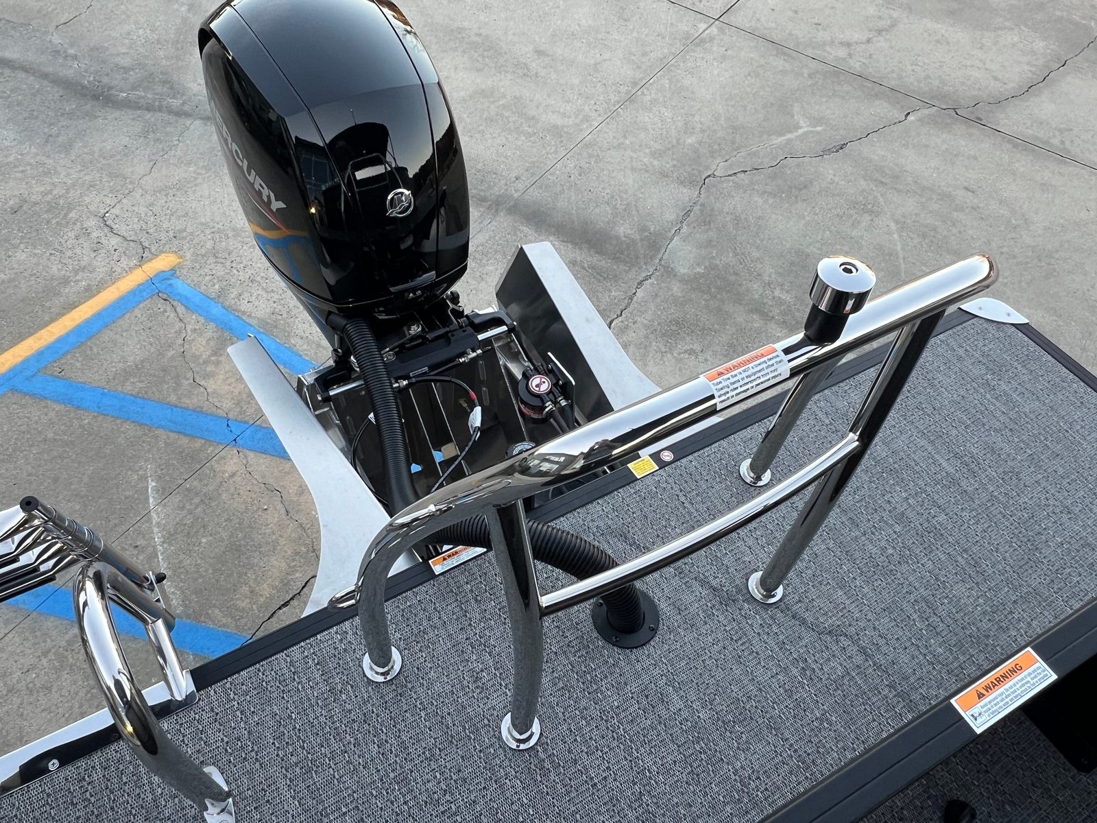 The Barletta Sanza S22QC is designed with practicality in mind, making ownership as enjoyable as it is effortless. The in-floor midship storage is perfect for keeping your essentials organized and easily accessible, whether you are packing for a day of fishing, swimming, or picnicking on the water. The boat's manageable 21.5-foot length makes docking and maneuvering a breeze, even for those new to boating.Fuel efficiency is another key advantage, thanks to the advanced Mercury Four Stroke engine, which provides reliable power without compromising on economy. The durable Amore Gray flooring is easy to clean and maintain, ensuring your pontoon remains in top condition season after season.