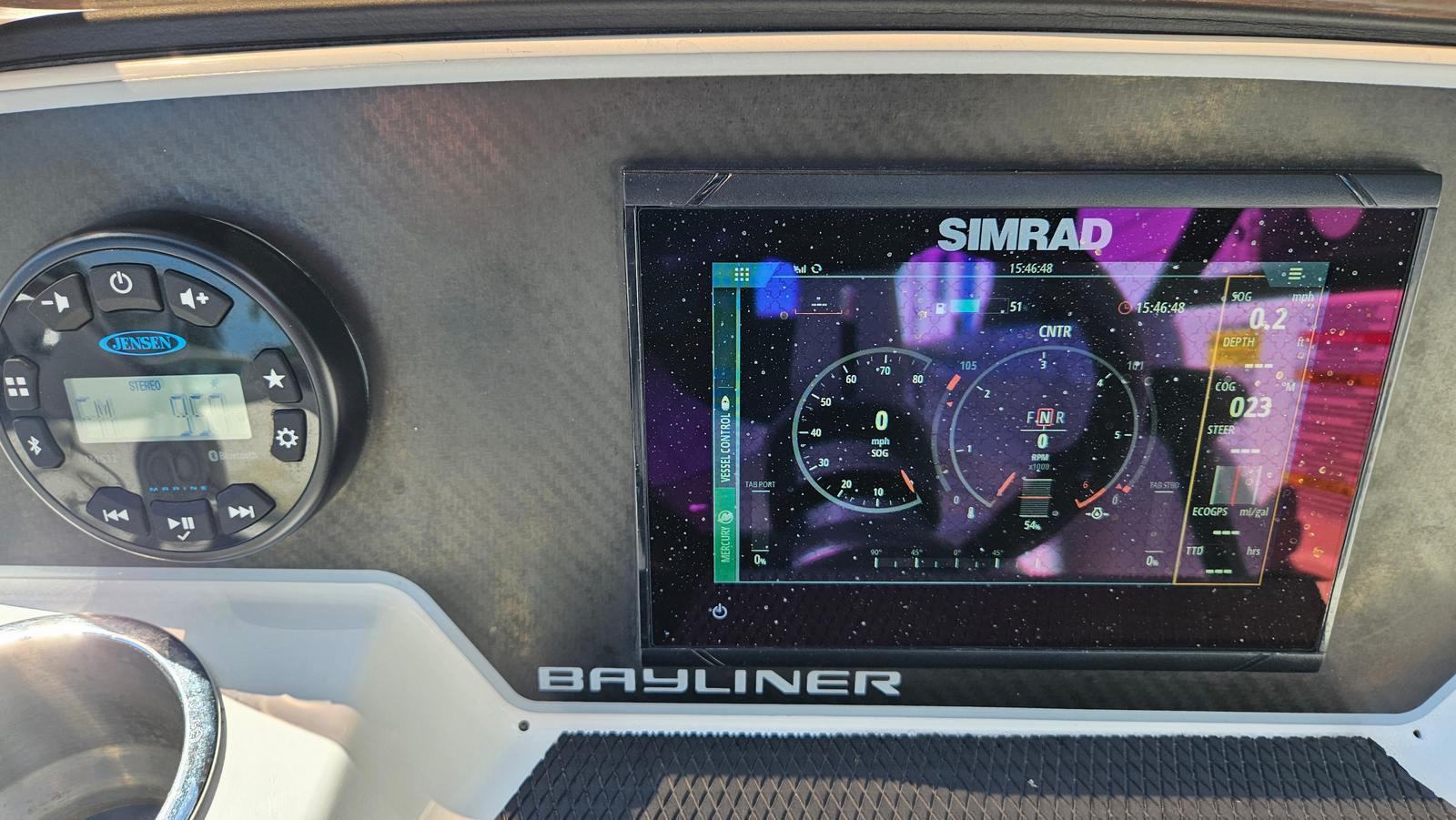 This Bayliner boat for sale comes equipped with a suite of special features designed to enhance your boating experience. The tandem axle trailer makes transporting your boat to and from the water a breeze, offering stability and peace of mind on the road. The wake tower adds a sporty edge, perfect for wakeboarding, tubing, or simply adding to the boat’s stylish silhouette. The Sea Deck provides a comfortable, non-slip surface underfoot, making it easy to move around the boat safely and comfortably.Stay entertained and connected with the Bluetooth stereo, allowing you to stream your favorite playlists and set the perfect mood for every outing. The Simrad electronics package offers advanced navigation and fish-finding capabilities, giving you the confidence to explore new waters or track down the best fishing spots. Every detail of the Bayliner 2200 DX OB is designed to maximize fun, convenience, and safety for you and your guests.