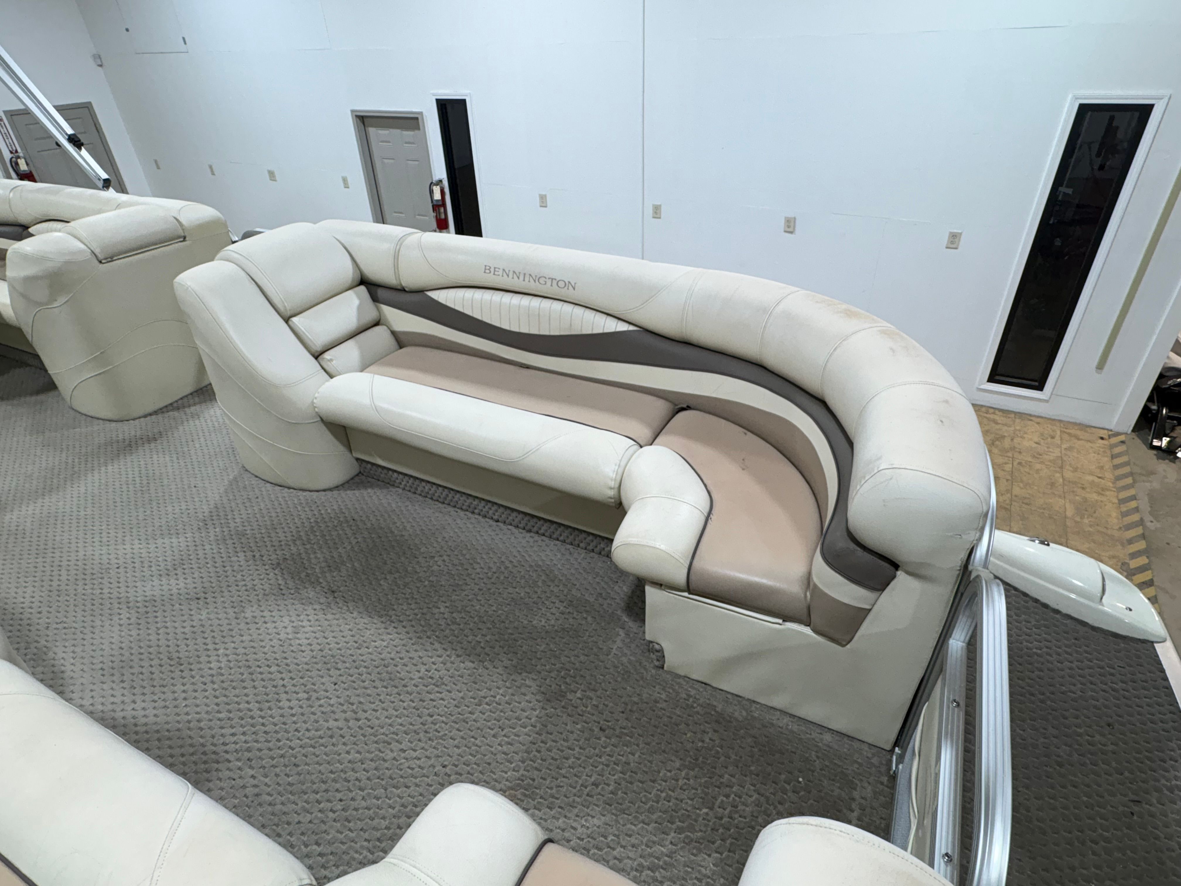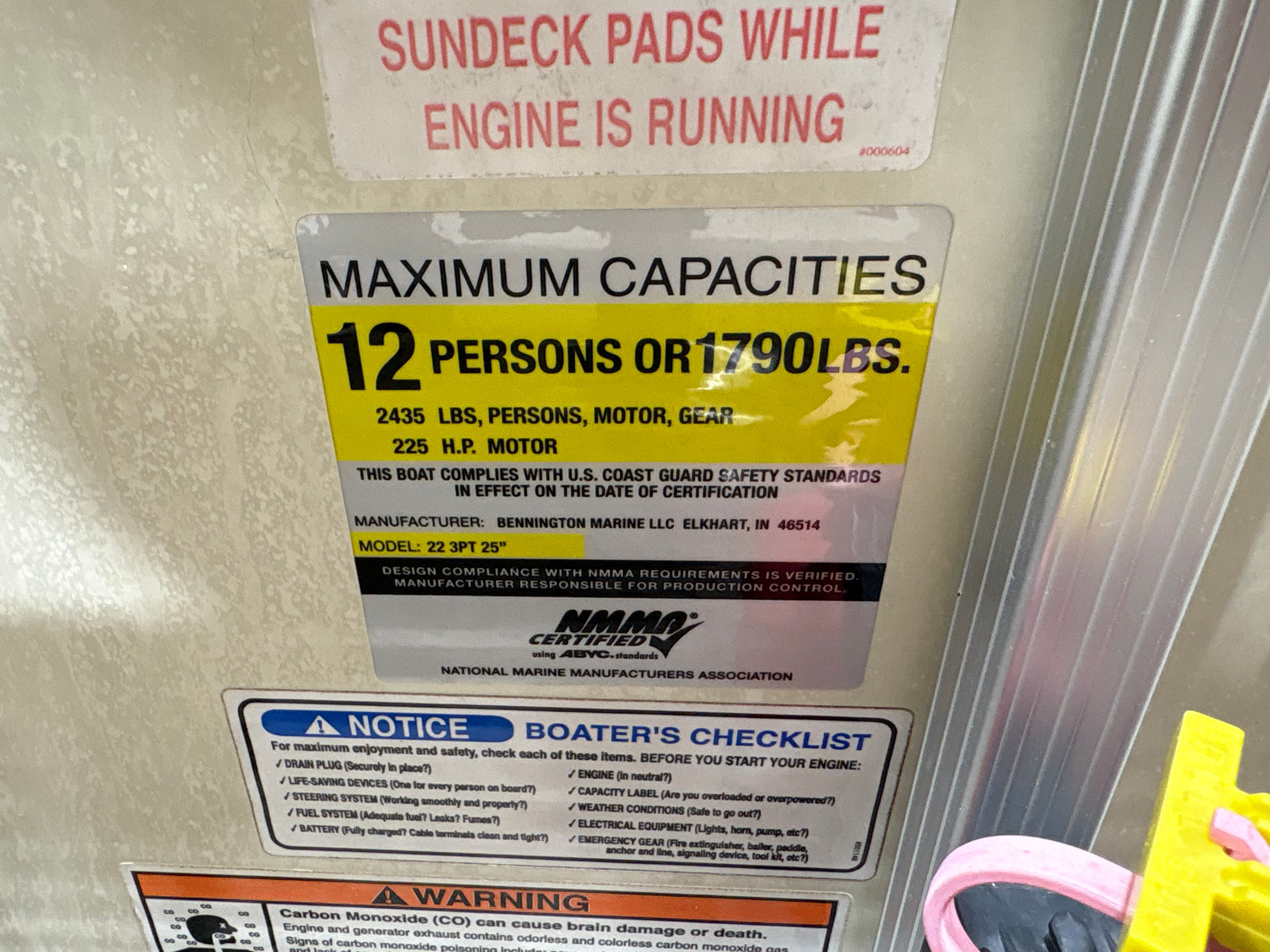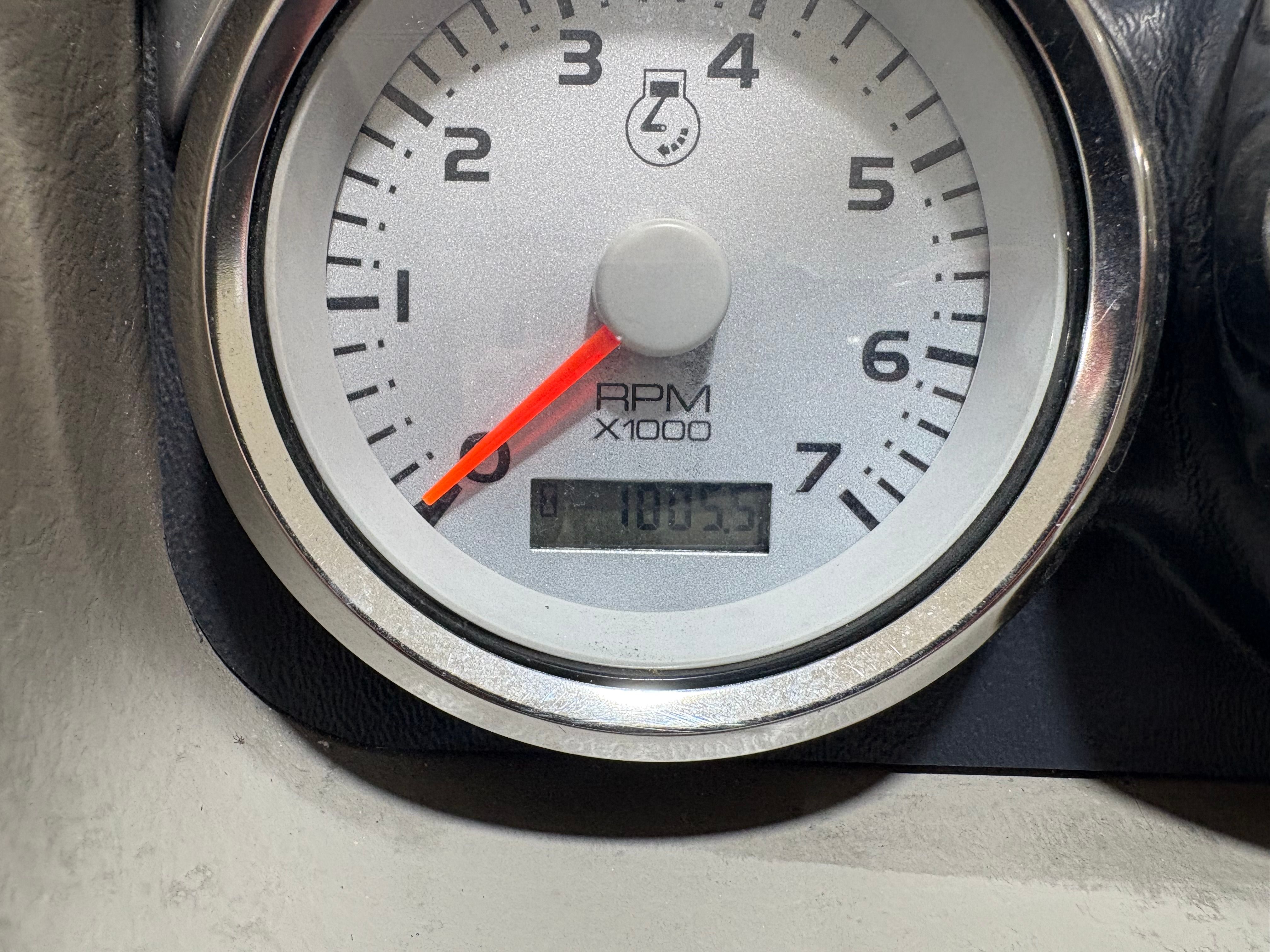 Powering this Bennington pontoon is a single engine delivering an impressive 150 horsepower. With 1005 engine hours, this boat has proven its reliability and is ready for many more adventures. The 150 HP engine provides plenty of power for cruising, towing water toys, or reaching your favorite fishing spots with ease. The smooth handling and responsive acceleration ensure that every outing is enjoyable, whether you’re gliding across calm lakes or navigating busier waterways. The engine’s performance is well-suited to the pontoon’s size, offering a balanced combination of speed, efficiency, and maneuverability.