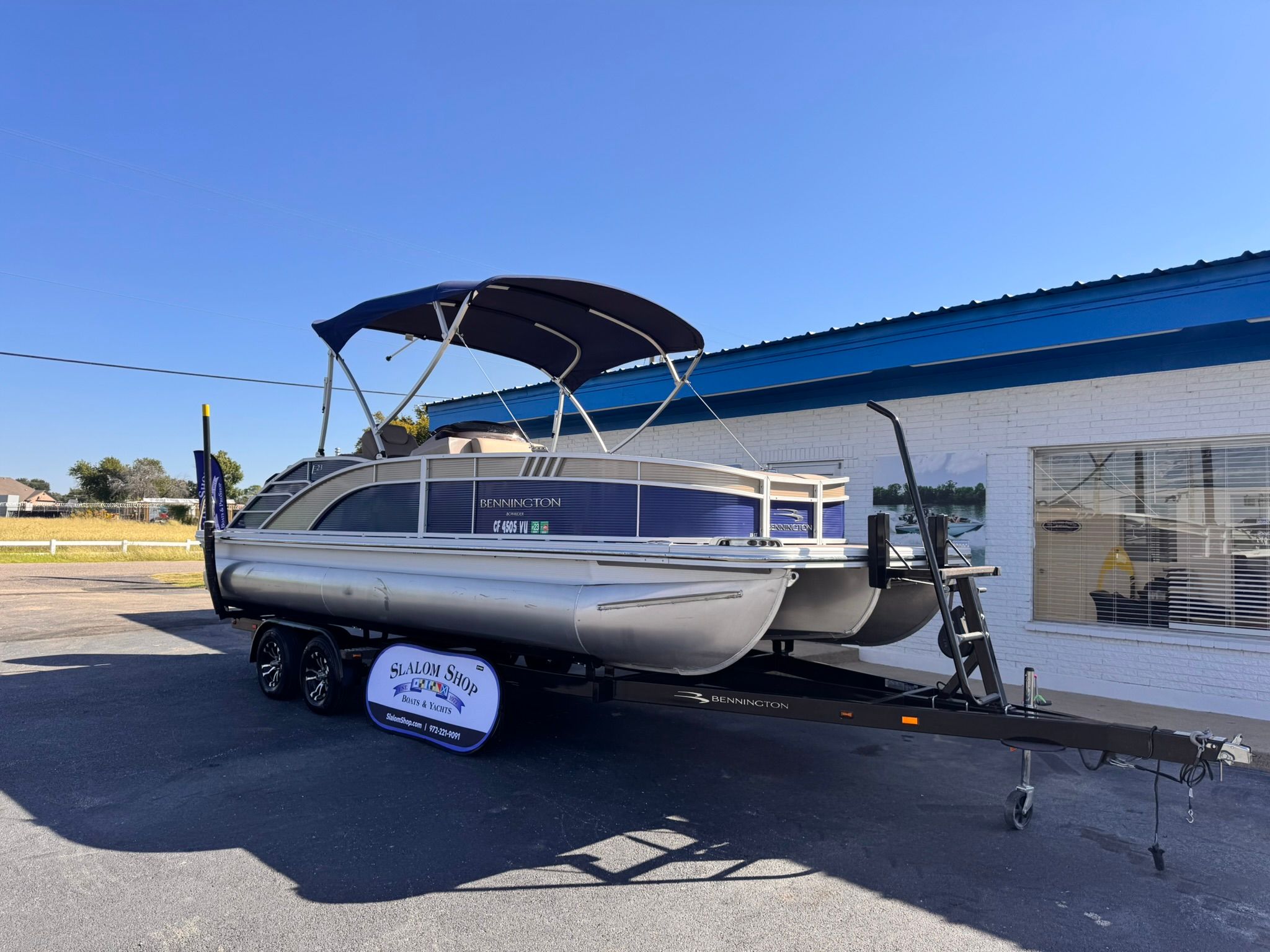 Now available on consignment at our New Used Boat Super Center in Lewisville, this 2021 Bennington 23 LTSB Tritoon offers a smooth, powerful ride with plush comfort and a premium floorplan. Powered by a Mercury 200 HP 4-Stroke Engine with only 66 hours, this tri-tube pontoon is ideal for cruising, entertaining, and towing water toys.