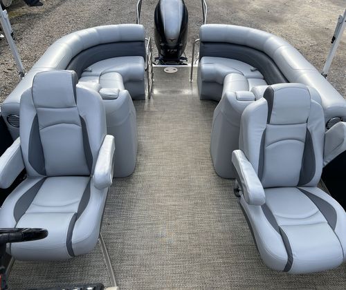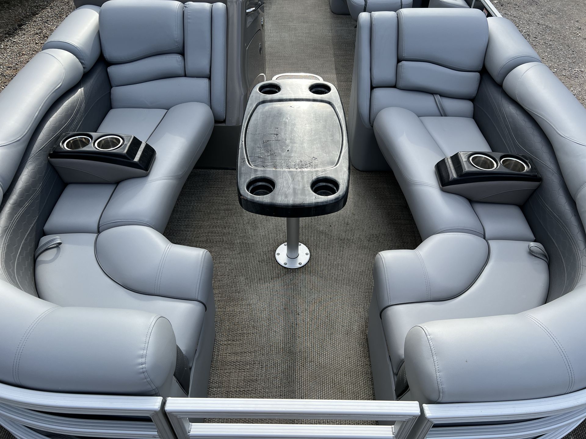This Bennington pontoon boat for sale is as practical as it is enjoyable. The generous storage compartments allow you to bring along everything you need for a day on the water, from coolers and snacks to fishing gear and water toys. The boat’s design makes docking and launching straightforward, so you can spend less time preparing and more time enjoying your adventure.Fuel efficiency is another key benefit of the Bennington 23 RFB. The 175 HP engine is engineered for optimal performance without excessive fuel consumption, allowing you to maximize your time on the water while minimizing trips to the fuel dock. The sturdy construction and reliable engine also mean lower maintenance requirements, giving you peace of mind and more time to focus on making memories.