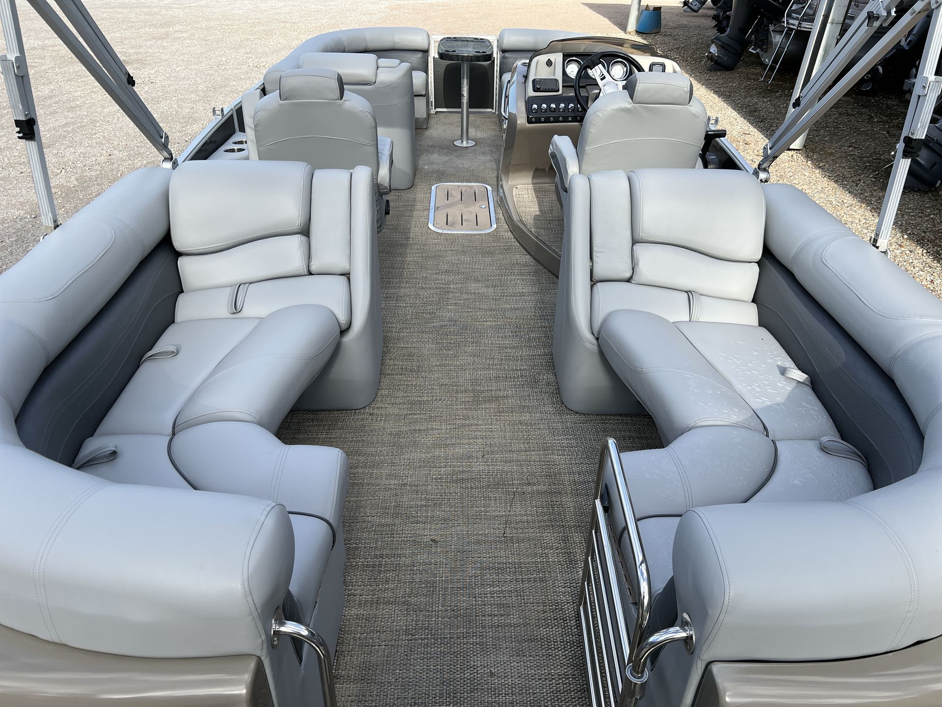 The 2018 Bennington 23 RFB is a 23-foot pontoon that exemplifies the brand’s commitment to quality and comfort. With its spacious layout and thoughtful design, this used pontoon boat offers ample room for relaxation and socializing. The sleek lines and modern aesthetic make it a head-turner at any marina or lake, while its durable construction ensures years of reliable enjoyment. With only 80 engine hours, this Bennington pontoon has been gently used and is ready for many more adventures.