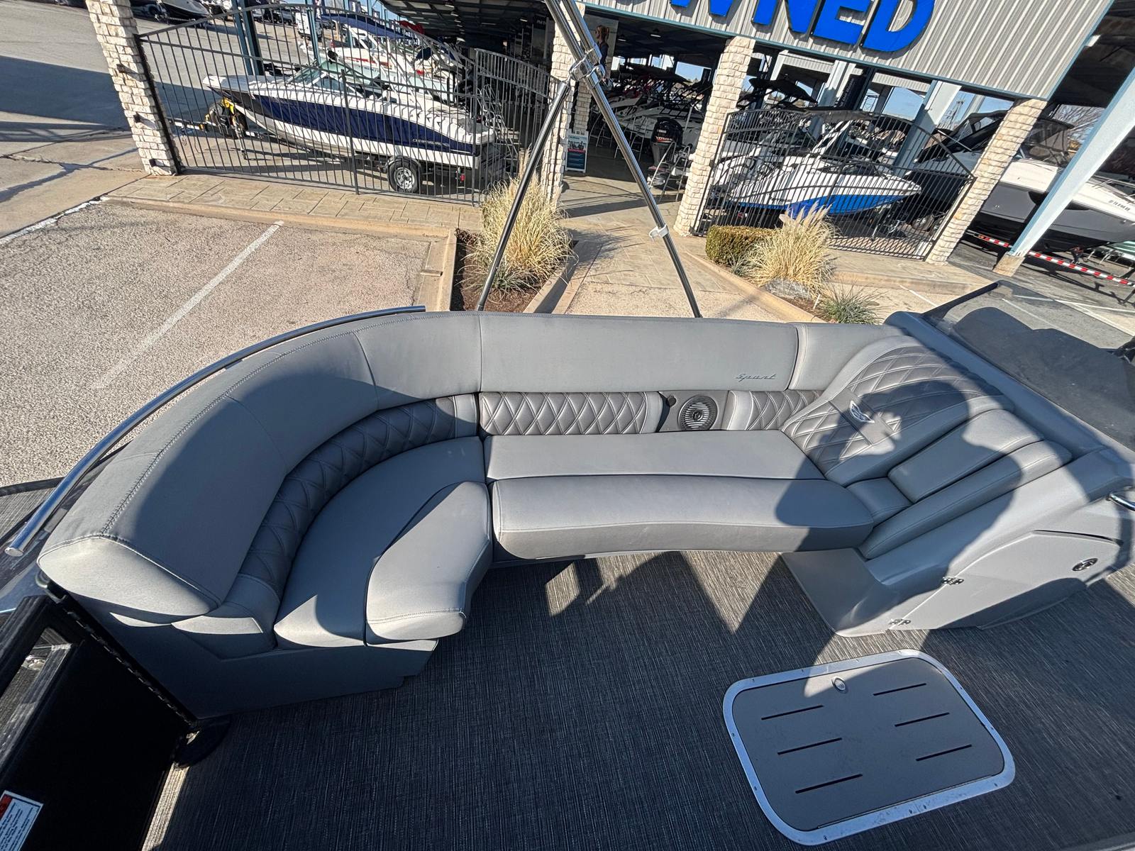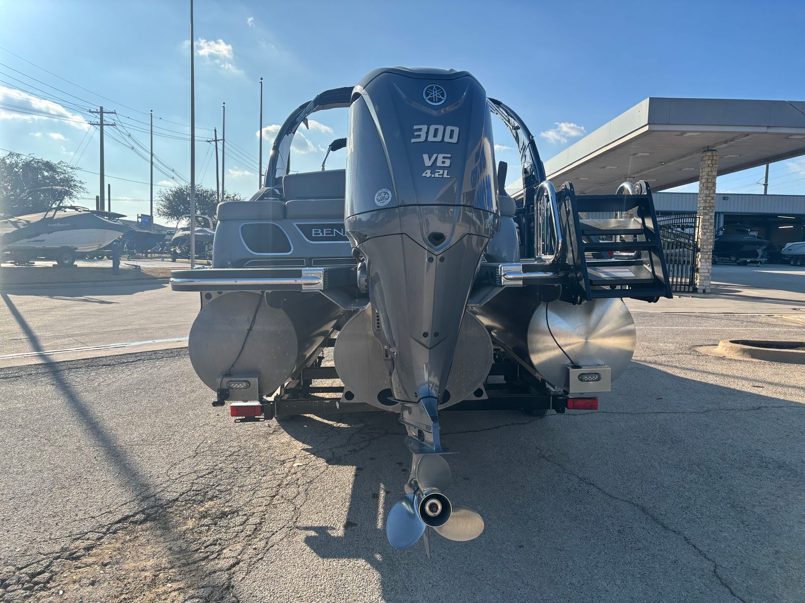 The Bennington 25 Qsba is designed with both luxury and functionality in mind. Its spacious deck layout is ideal for socializing, with plenty of room for guests to move around comfortably. The plush seating invites relaxation, while the thoughtfully arranged helm ensures that the captain has everything needed for a seamless boating experience. The pontoon’s sturdy construction and attention to detail are evident throughout, from the quality of the materials to the precision of the finishes.Special features of the 25 Qsba enhance the overall boating experience, making it a standout choice among pontoon boats for sale. The generous length of 25.04 feet provides ample space for lounging, dining, and entertaining. The single 300 horsepower engine not only delivers impressive speed but also ensures efficient operation, making every outing enjoyable and worry-free.