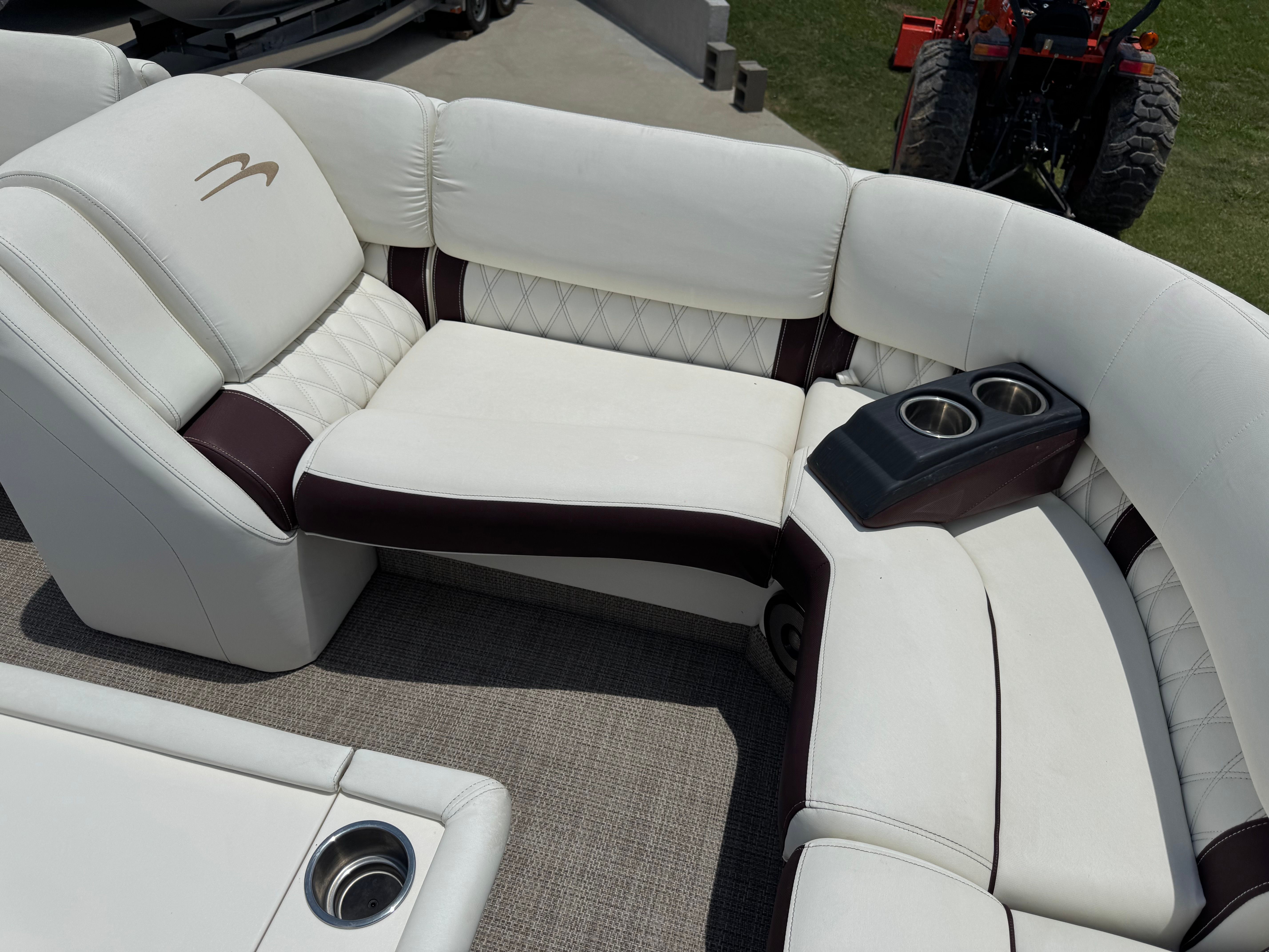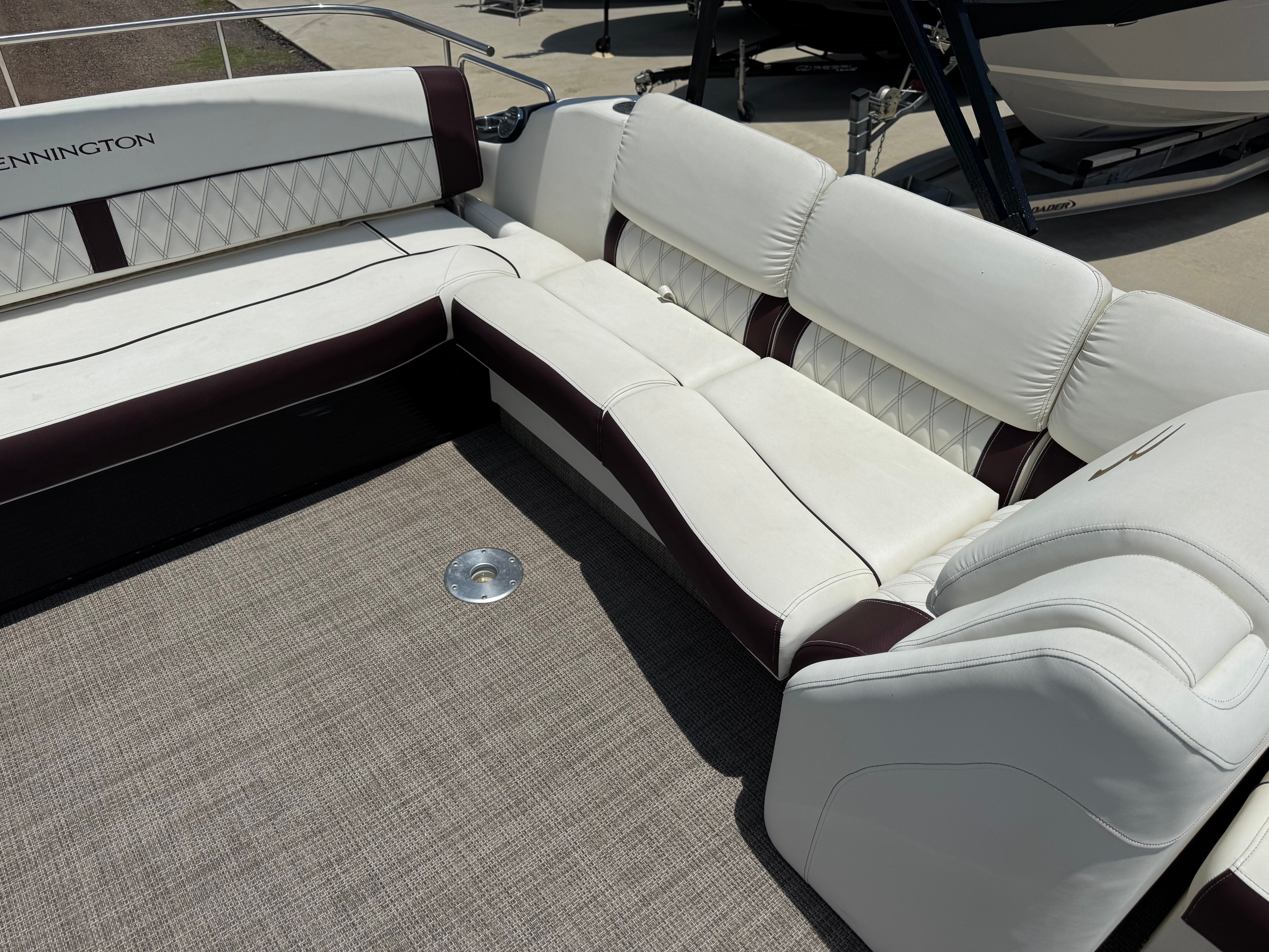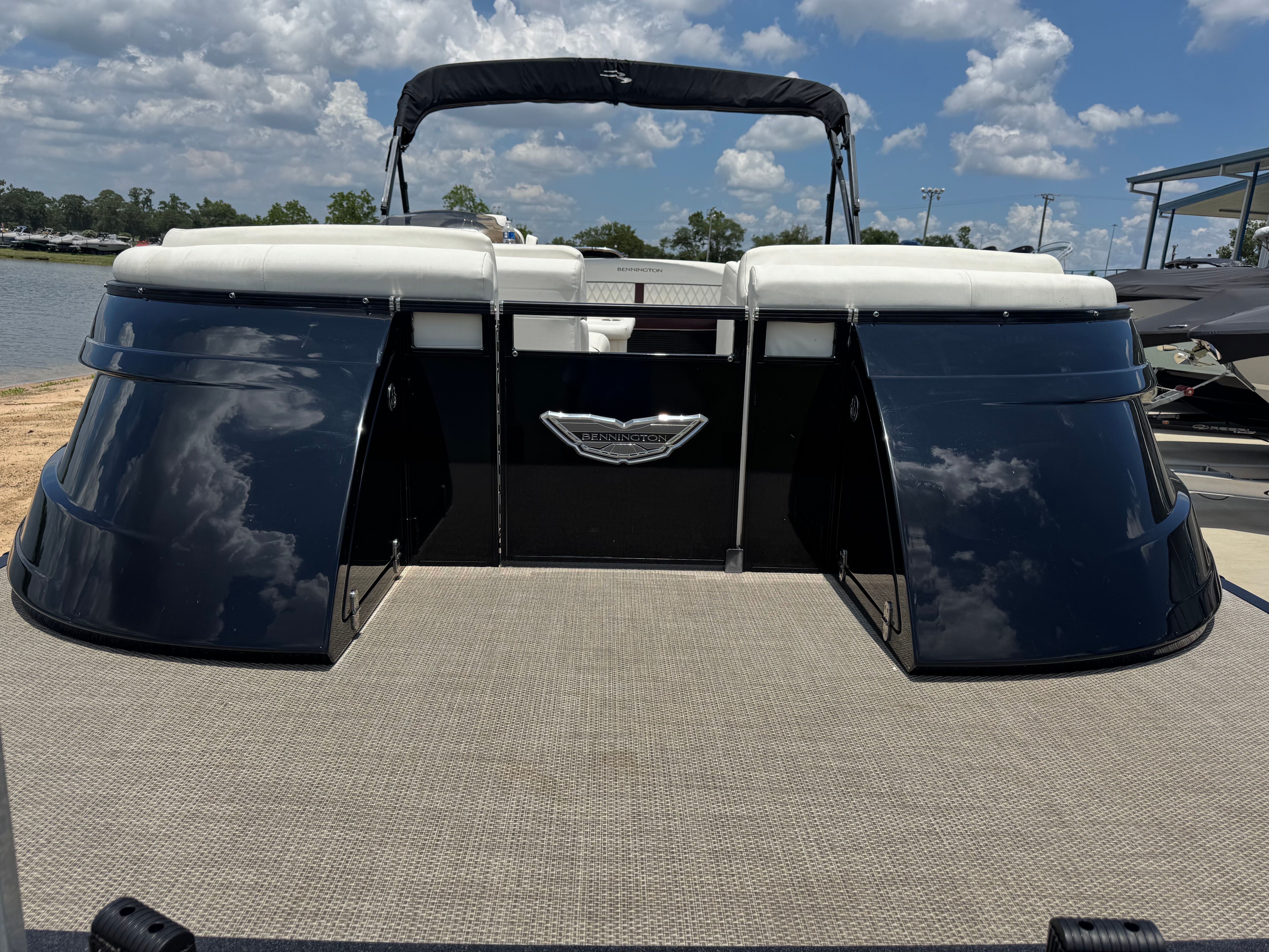 The Bennington 25 QXSBX1IO ESP is packed with features designed to elevate your time on the water. Its spacious 27-foot deck offers plenty of room for guests, making it perfect for social gatherings and family outings. The layout is thoughtfully designed to maximize comfort and convenience, with plush seating and ample space for movement. The pontoon’s construction reflects Bennington’s commitment to durability and quality, ensuring a vessel that’s built to last.Special features of this model include the ESP (Elliptical Sport Package), which enhances stability and handling, making it easier to navigate various water conditions. The boat’s design also prioritizes safety, with sturdy railings and secure entry points. Whether you’re anchoring for a swim or docking at your favorite lakeside spot, the Bennington 25 QXSBX1IO ESP offers peace of mind and ease of use.