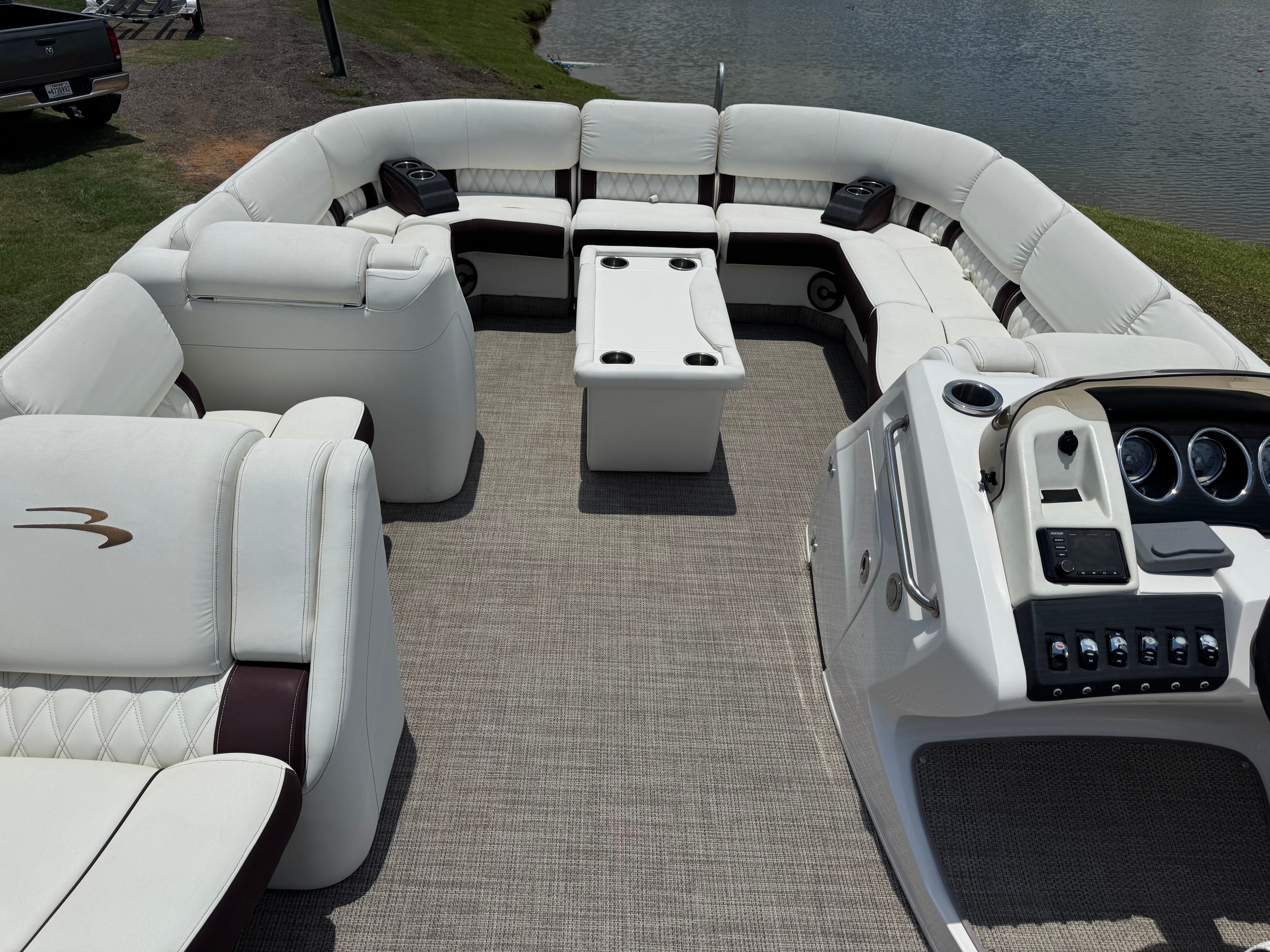 The Bennington 25 QXSBX1IO ESP shines in a variety of scenarios, making it a versatile choice for any boating enthusiast. It’s perfect for family outings, with plenty of space for kids and adults to relax, play, and enjoy the water. The boat’s stability and safety features make it an excellent option for those with young children or guests who are new to boating.For fishing enthusiasts, the spacious deck provides ample room for casting and storing gear, while the powerful engine ensures you can reach your favorite fishing spots with ease. If you’re looking for a luxury getaway, the Bennington 25 QXSBX1IO ESP offers the comfort and style you need to unwind and enjoy the beauty of nature. Its versatility makes it suitable for everything from quiet morning cruises to lively afternoon parties, ensuring there’s something for everyone to enjoy.