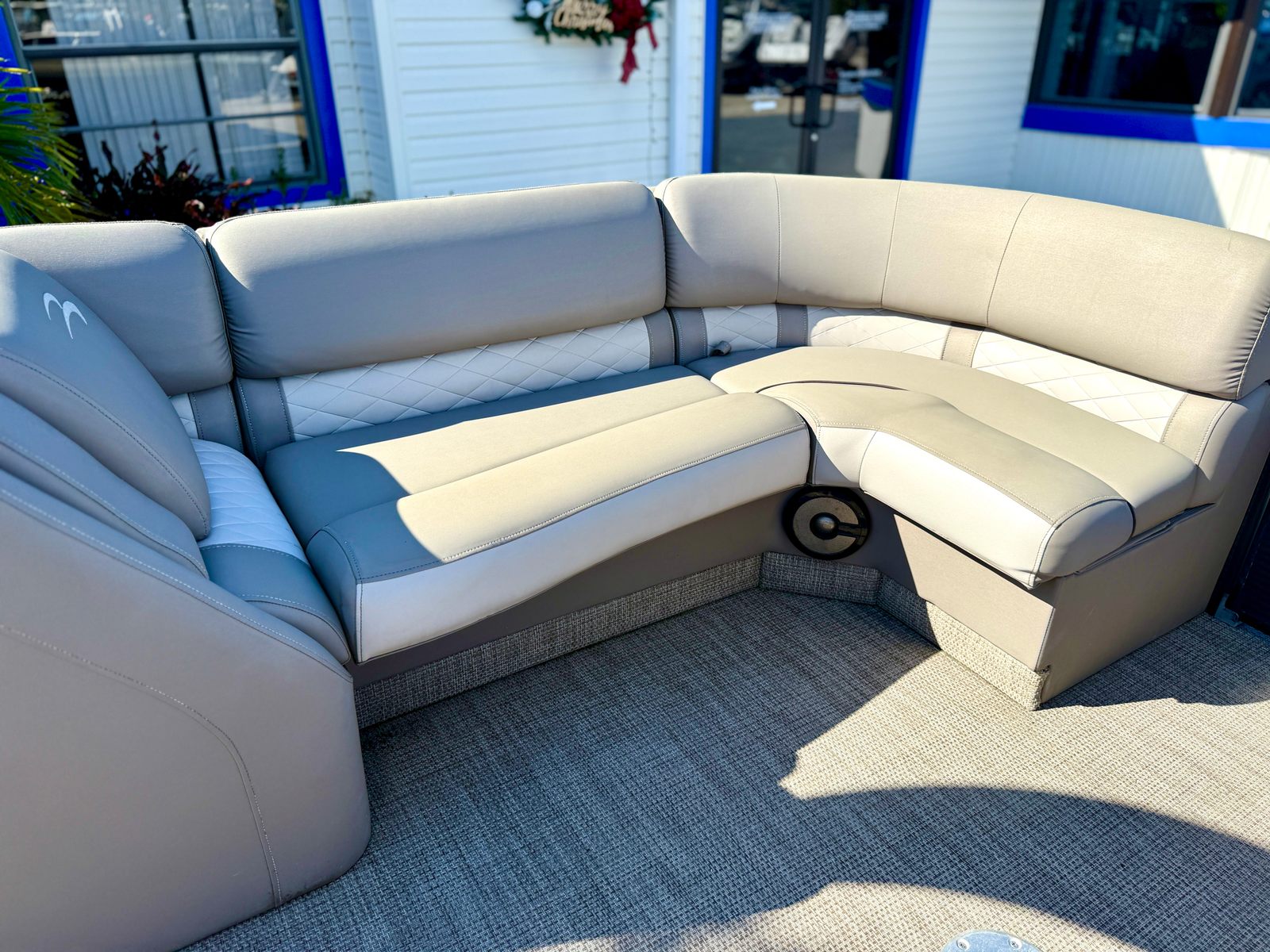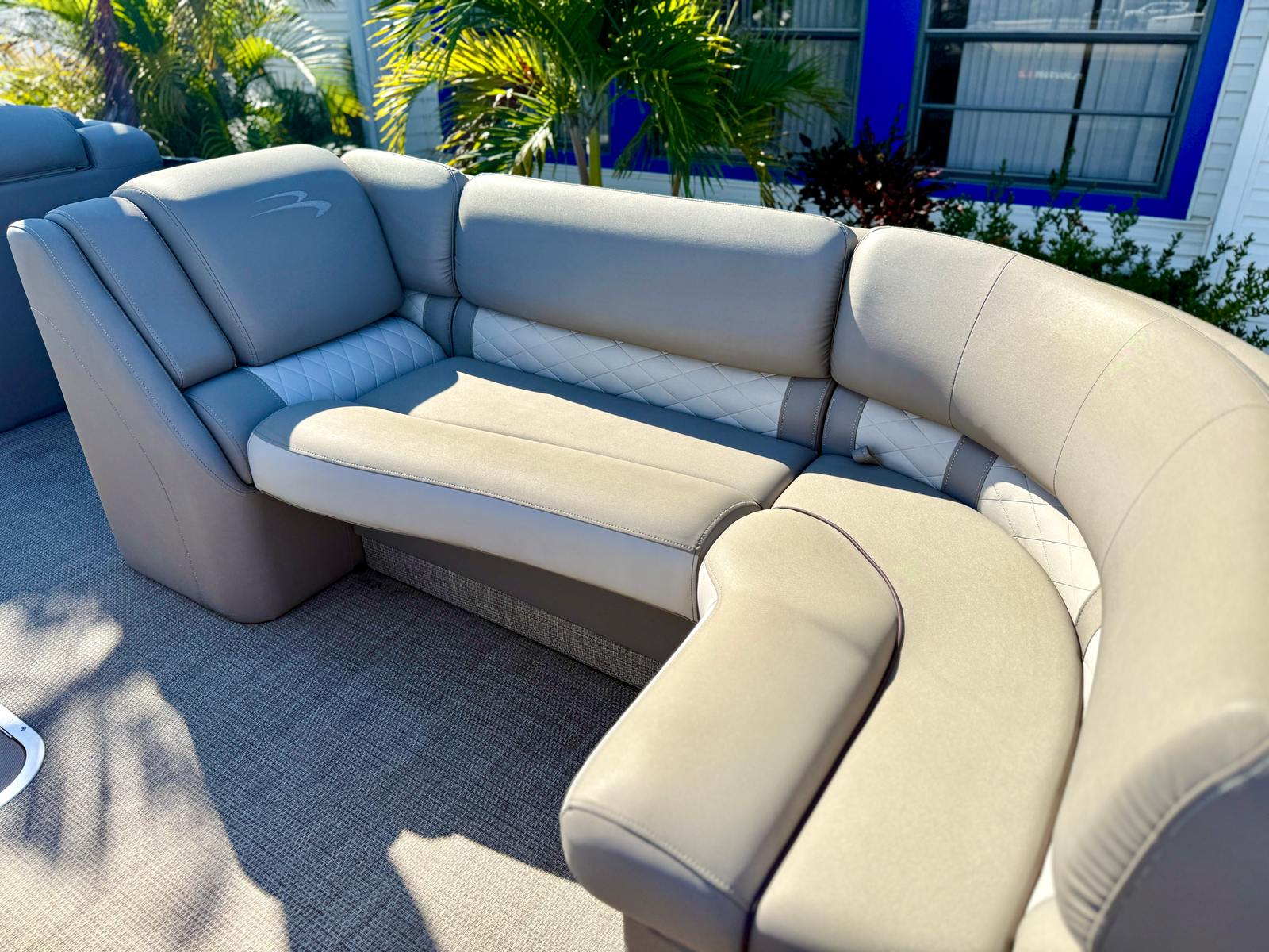 Power and performance are at the heart of the Bennington 28 RSB. Equipped with twin engines delivering a combined 400 horsepower, this pontoon boat is built to thrill. The dual-engine setup provides impressive acceleration, smooth handling, and the confidence to navigate a variety of water conditions. Whether you’re cruising at a leisurely pace or opening up the throttle for an exhilarating ride, the Bennington 28 RSB offers a responsive and enjoyable experience. The robust horsepower ensures you have the power needed for watersports, towing, or simply making a statement on the water.