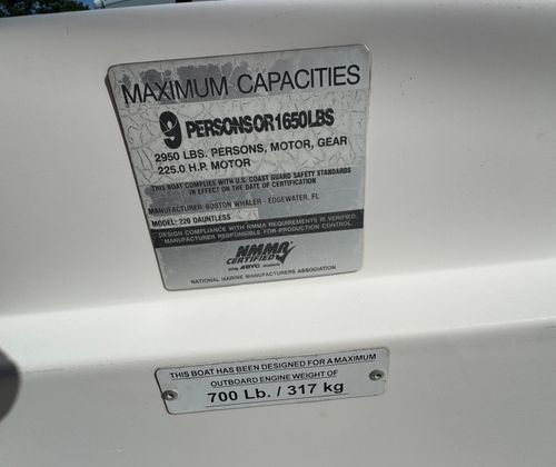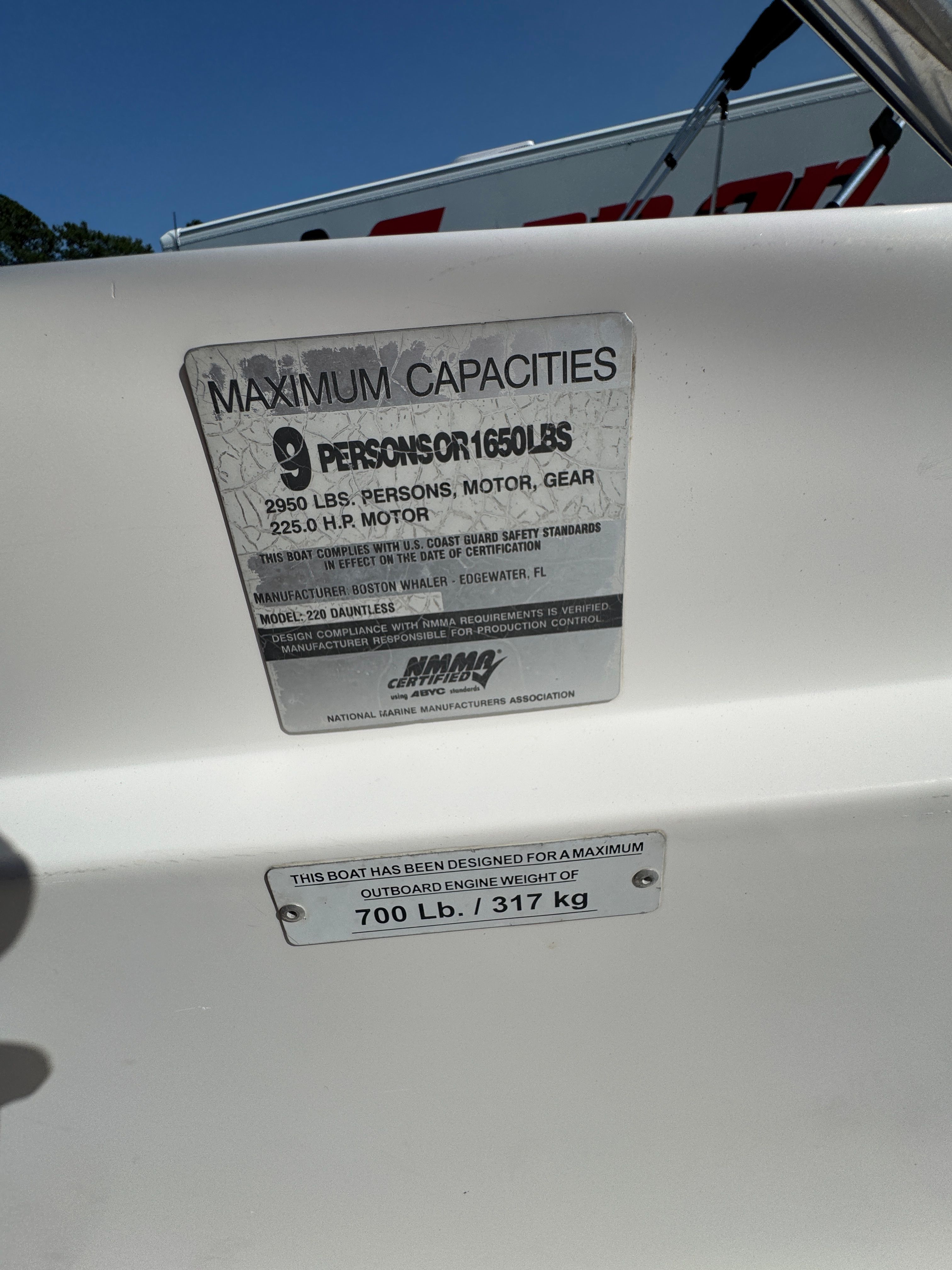 Powering this Center Console boat is a single engine with an impressive 225 horsepower, providing plenty of muscle for swift acceleration and smooth cruising. With 764 engine hours, the motor has proven its reliability and is ready for many more seasons of enjoyment. The 220 Dauntless is engineered for responsive handling, making it easy to navigate through choppy waters or glide across calm lakes. Whether you’re heading out for a day of fishing or towing water toys for family fun, the performance of this Boston Whaler boat for sale ensures you’ll have the power and agility you need.