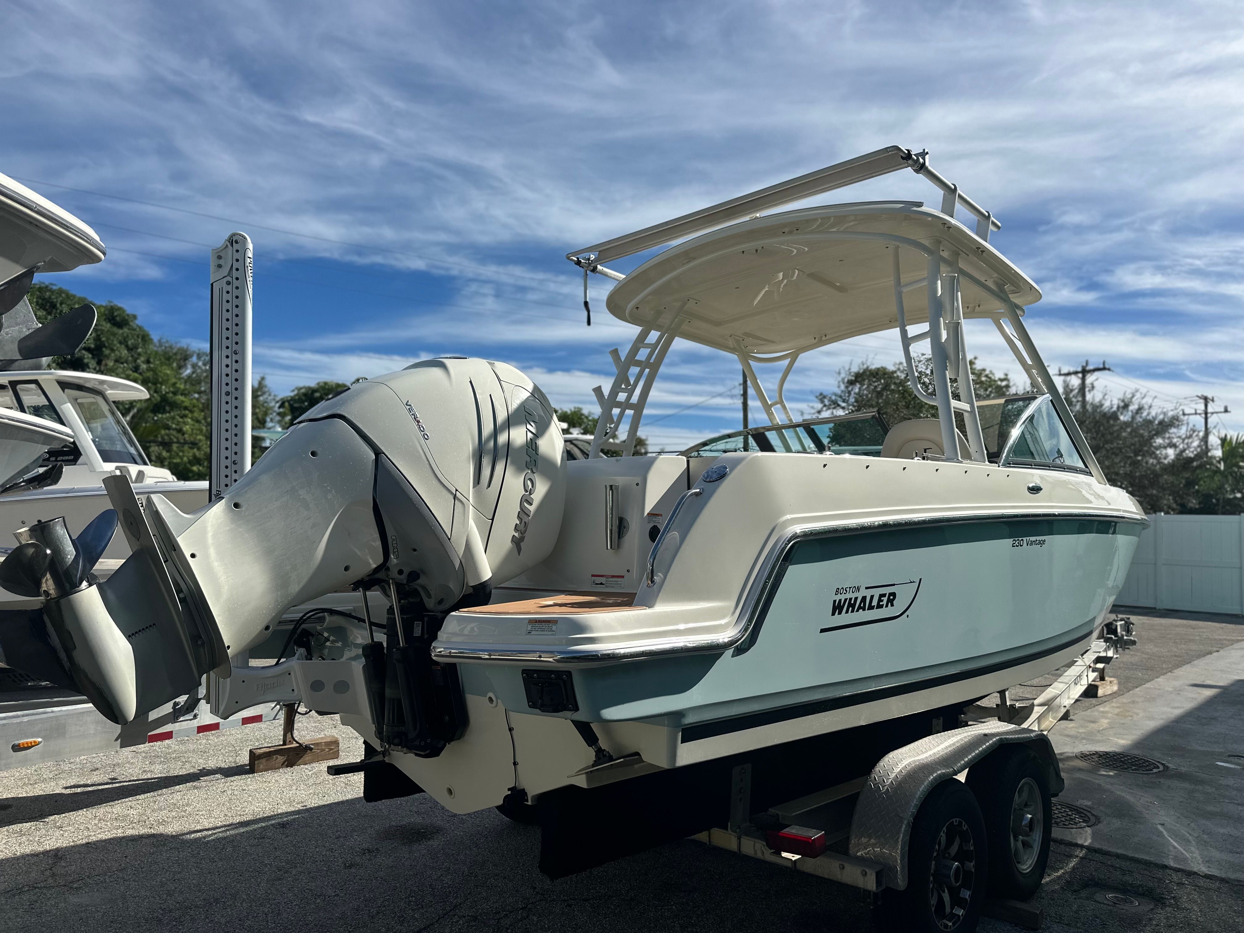 This 2017 Boston Whaler 230 Vantage is the perfect all-around dual console for family cruising, sandbar days, fishing, and watersports. Powered by a Mercury 300 Verado, it delivers the smooth, reliable performance Whaler is known for. This Vantage has been kept in inside dry storage, giving it excellent overall condition with no bottom paint and clean gelcoat. The 230 Vantage layout offers deep-V stability, plush seating, and smart use of space, making it one of the most versatile boats in its class.