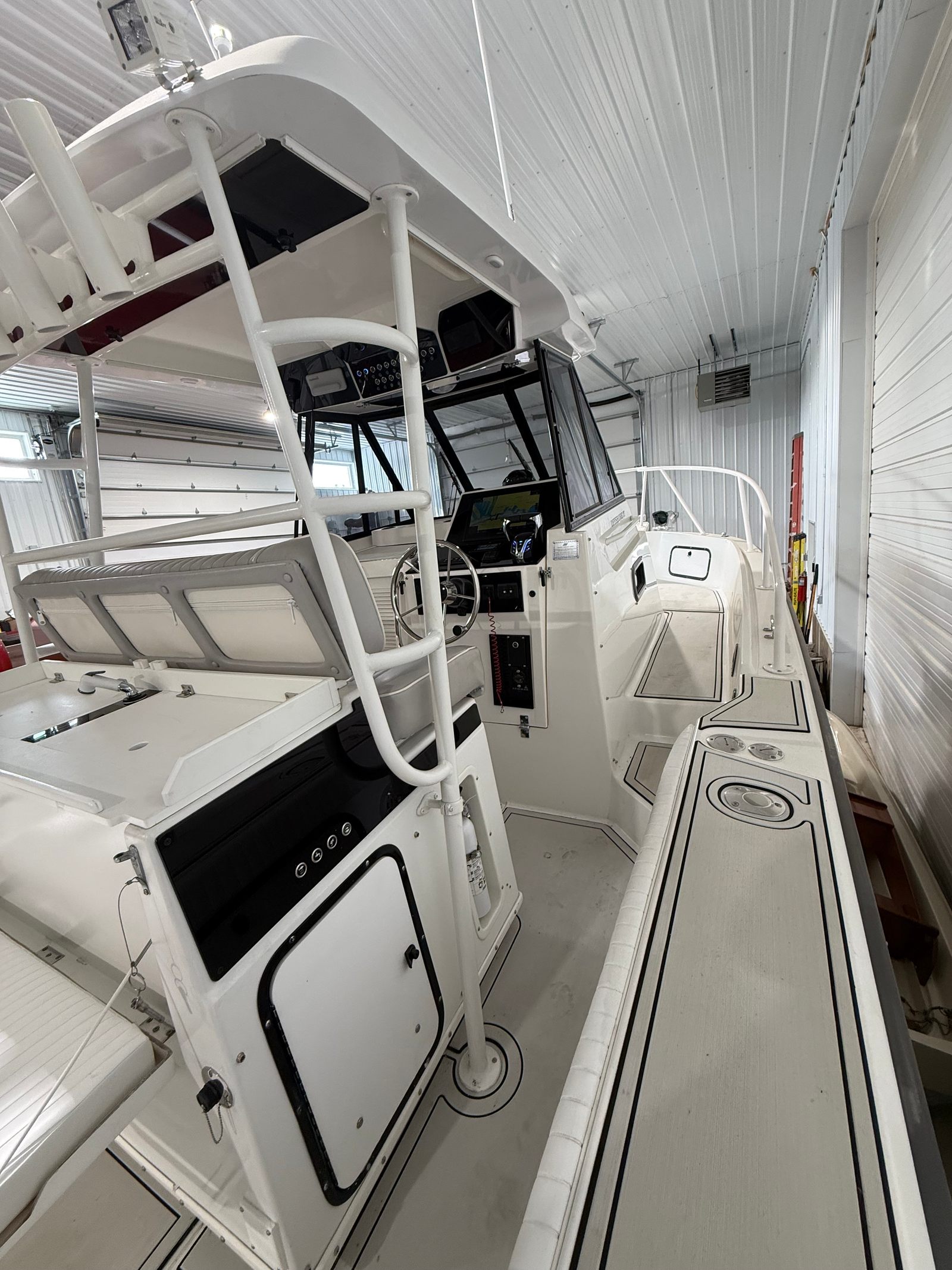 This impressive 1997 Boston Whaler 27 Offshore Center Console stands out with its classic lines and robust build. Measuring 27 feet in length, this boat offers ample space for fishing, relaxing, and entertaining. The center console layout is designed for maximum functionality, providing easy movement around the deck and unobstructed access to all areas of the boat. With its consigned condition and low engine hours, this vessel is a rare find for anyone searching for a well-maintained and capable offshore companion.