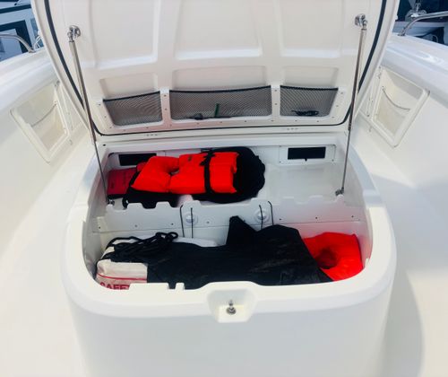 This center console boat for sale is not only about performance and fun; it also excels in practicality. The Boston Whaler 370 Outrage is designed for ease of use, featuring intuitive controls and a layout that simplifies navigation and operation. Storage space is thoughtfully integrated, providing ample room for all your essentials, from fishing tackle to personal belongings. This makes it easy to keep your gear organized and accessible, enhancing your overall boating experience.